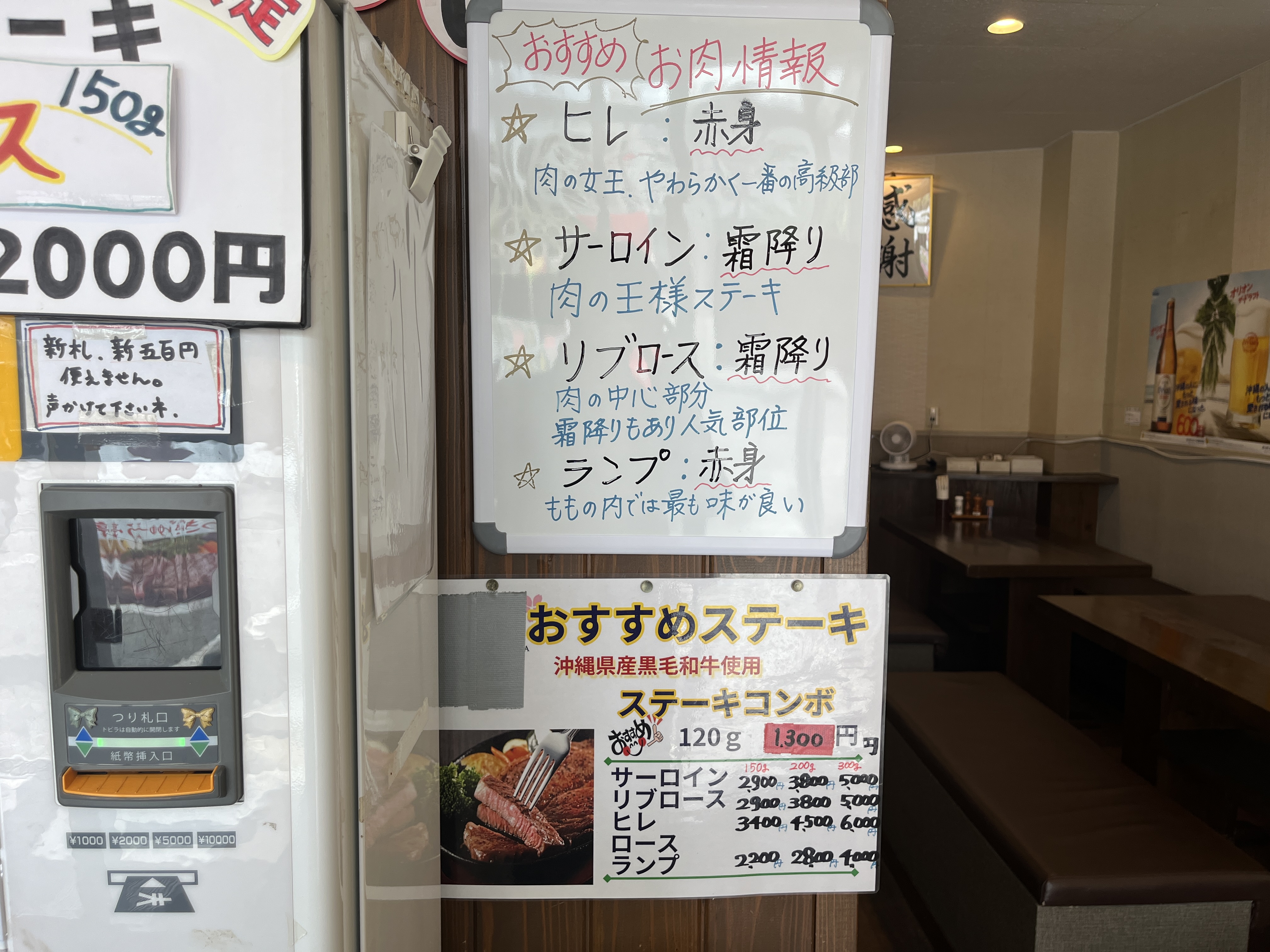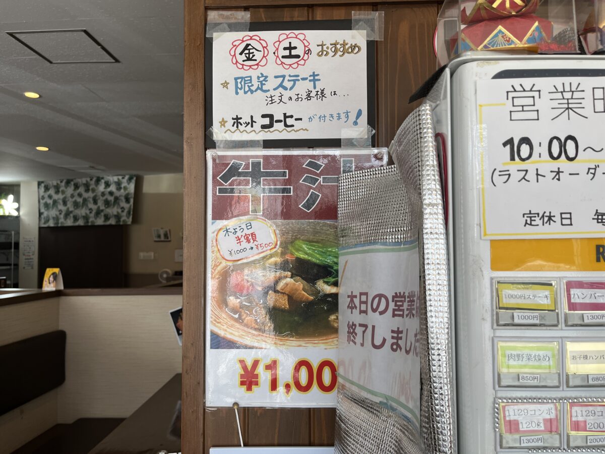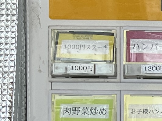 訪問前は知らなかったのですが、まさかの1000円ステーキがある!衝撃でした。まさか今どき、1000円ステーキがあるなんて!?もちろん税込みです。因みに、肉の種類とかg数とかの情報は一切なしです!