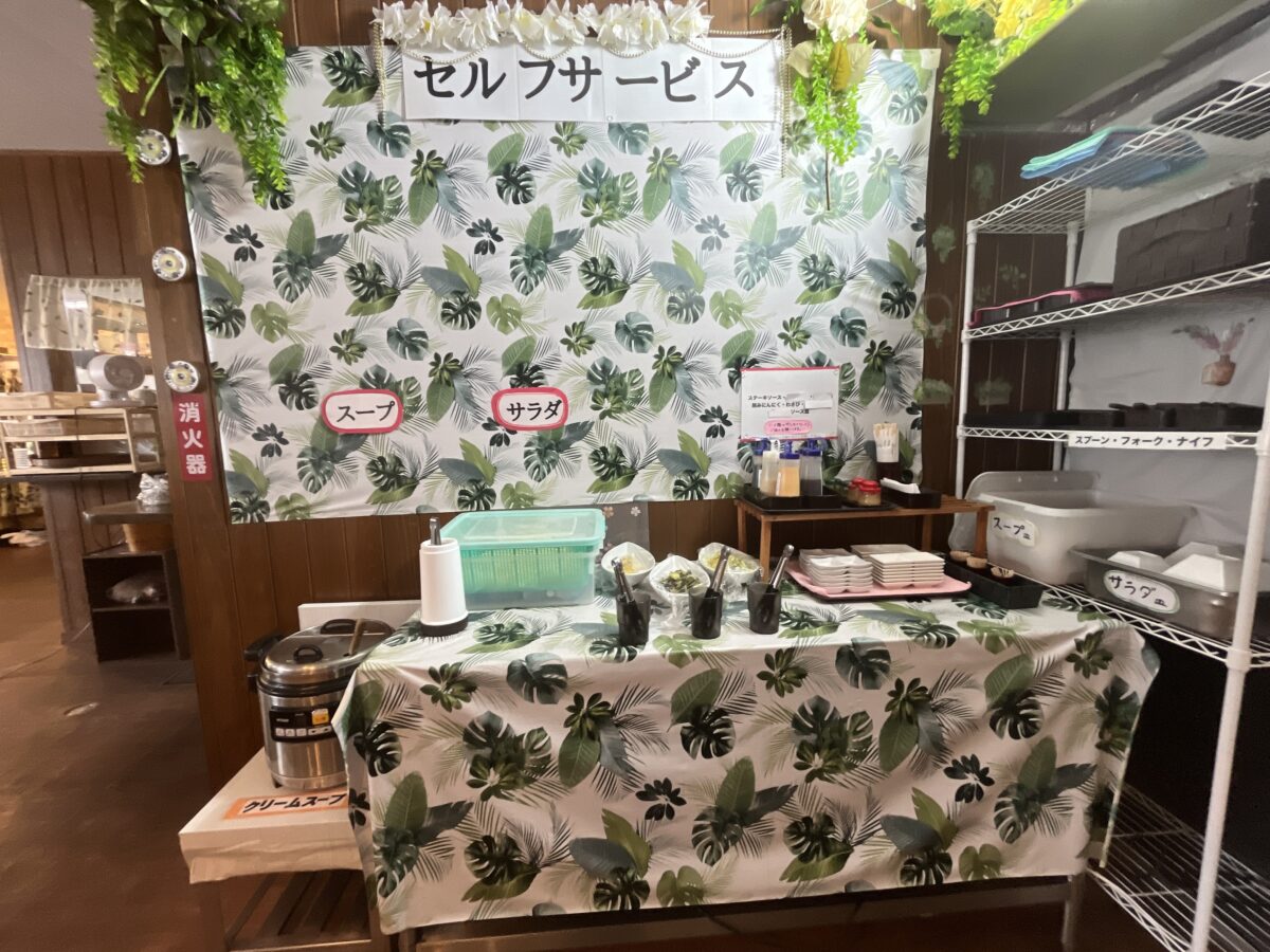 格安ステーキあるあるのスープバー、サラダバー付きです!因みに、ライスだけはおかわり不可でした。以前までは、ライスもおかわり自由だったっぽい。