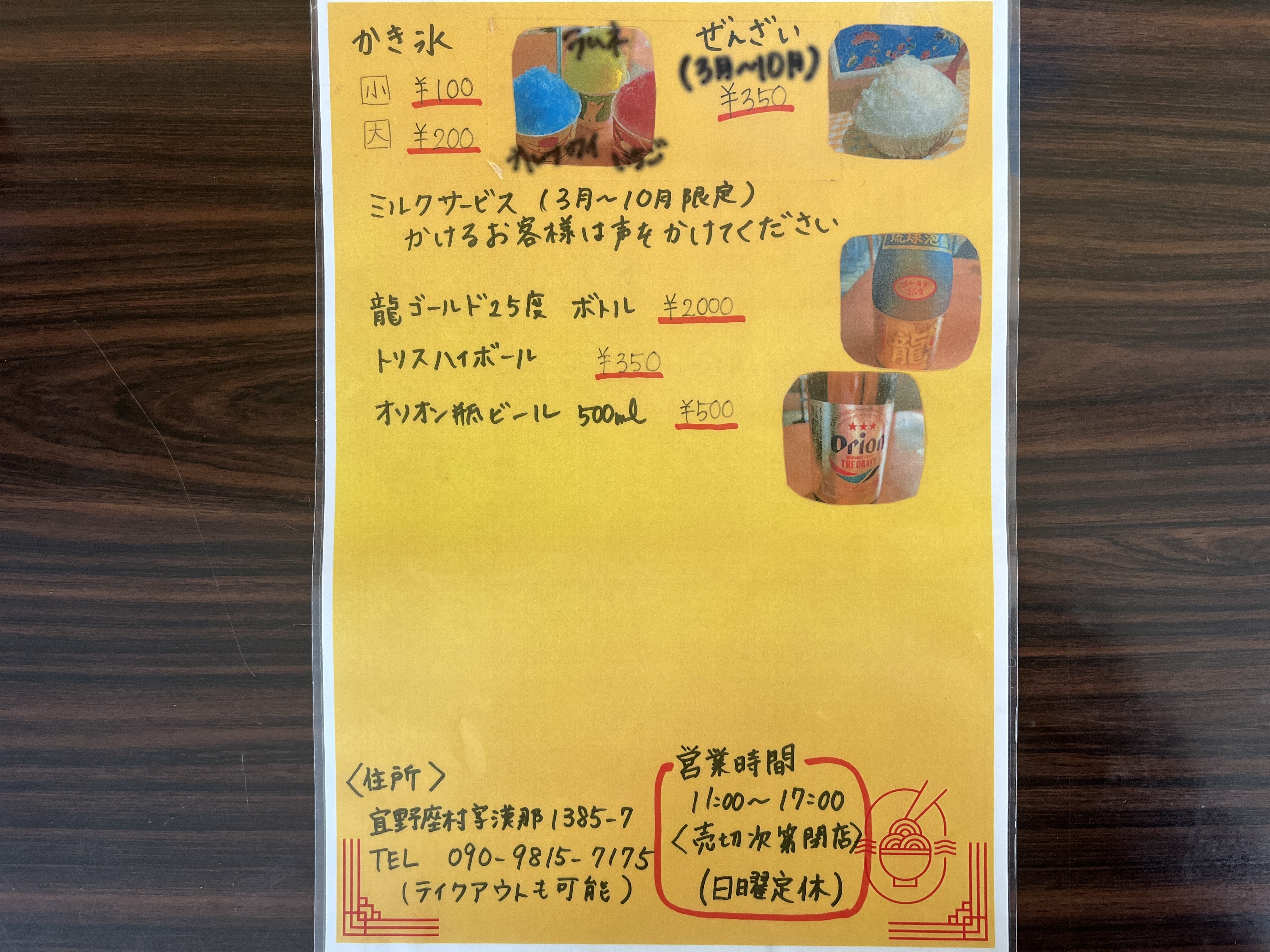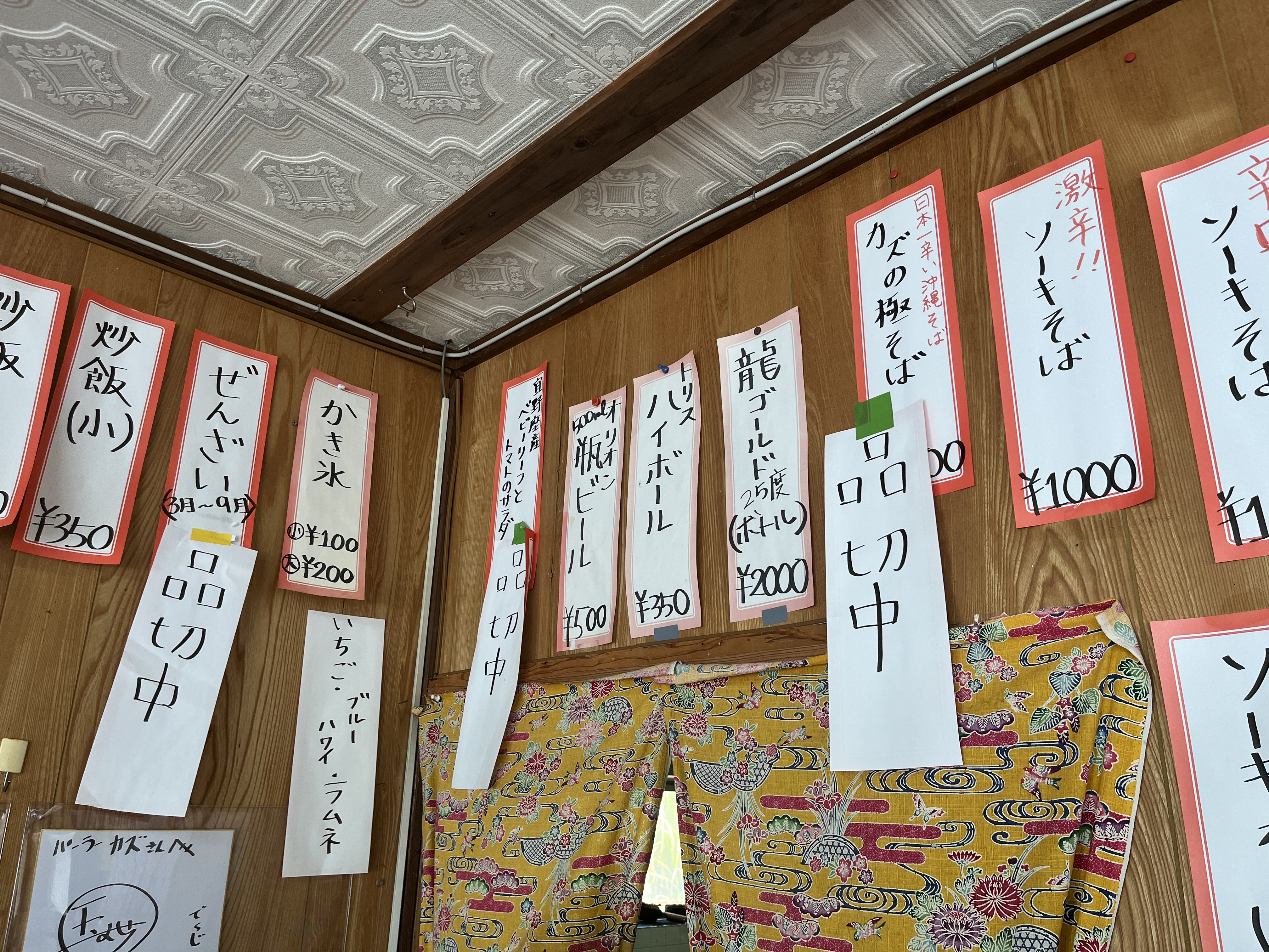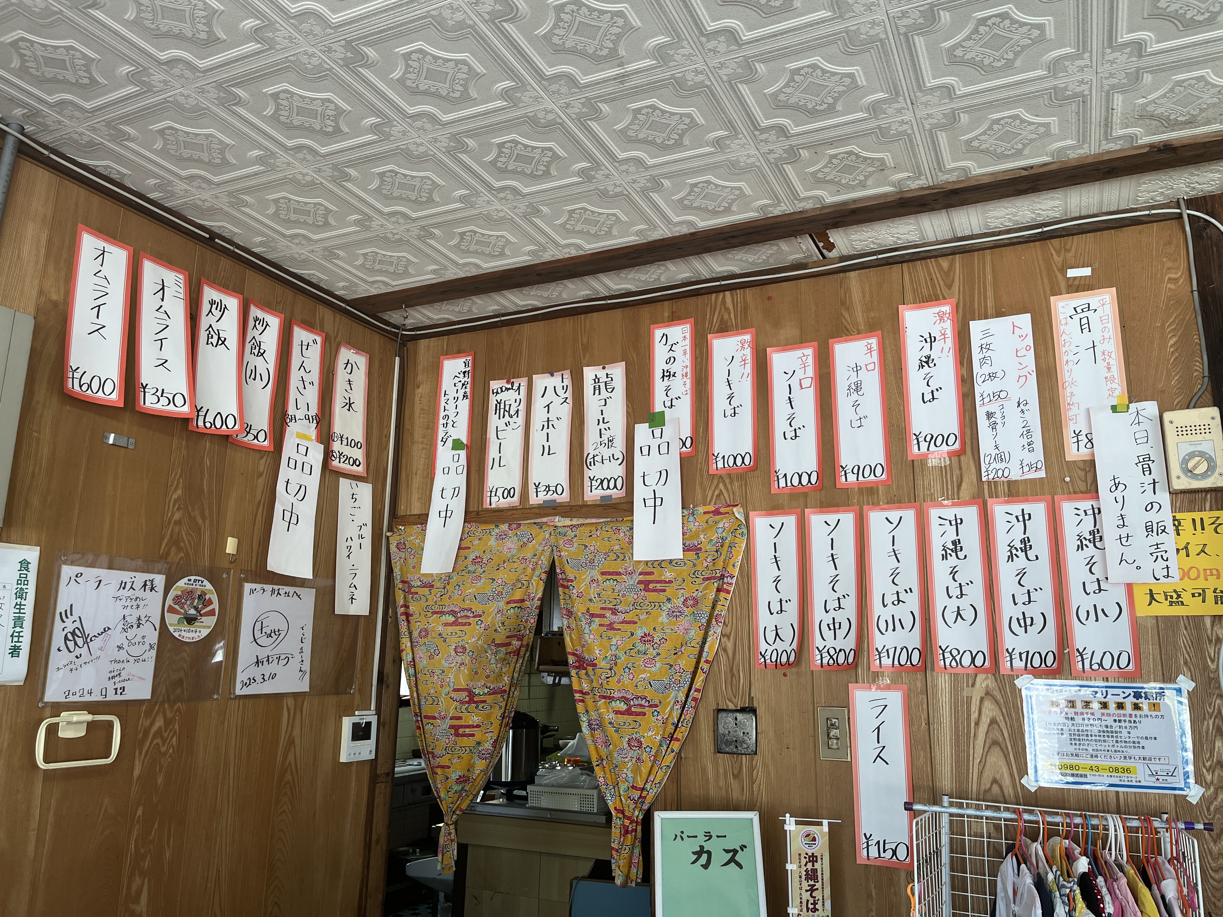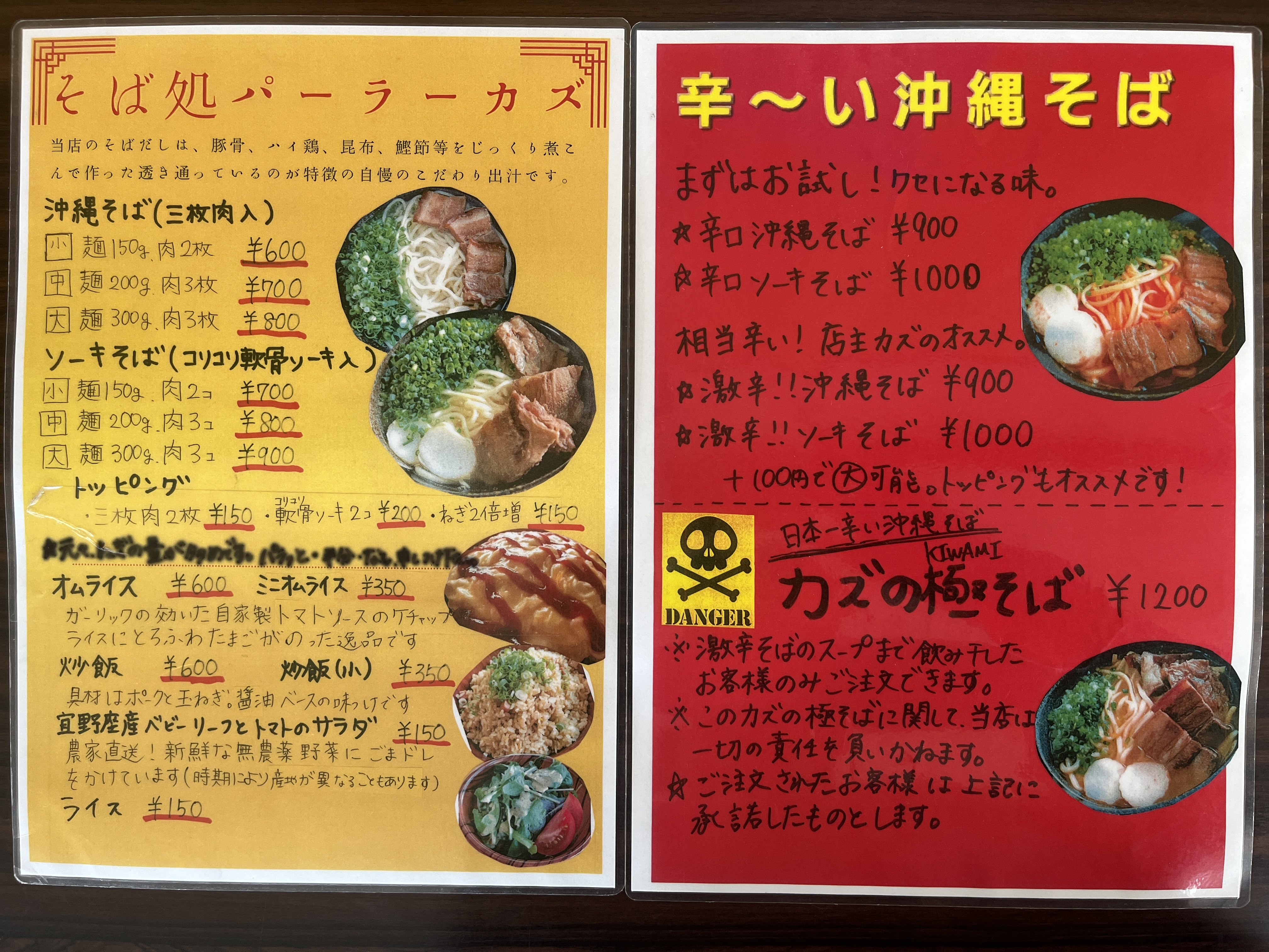 沖縄そばとオムライスの店と認識してましたが、辛〜い沖縄そばも推しみたいですね。しかも、「日本一辛い沖縄そば カズの極そば」らしい。因みに、カズの極そばは、激辛そばのスープを完飲した猛者しか注文できないらしい。一見さんは注文不可なので、要注意!