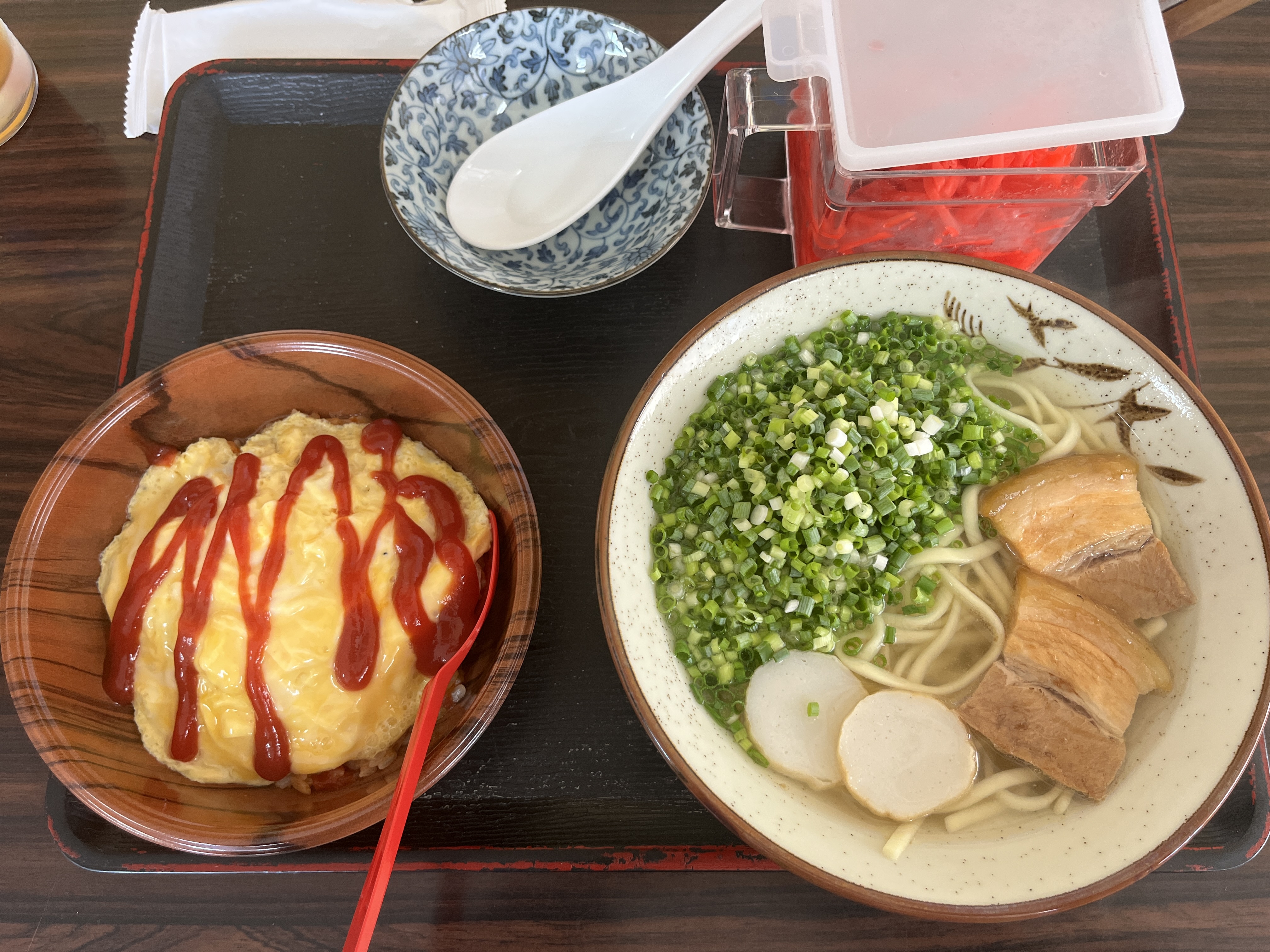 オムライスが有名なので、ミニオムライスを頼みました。そして沖縄そば(小)です。