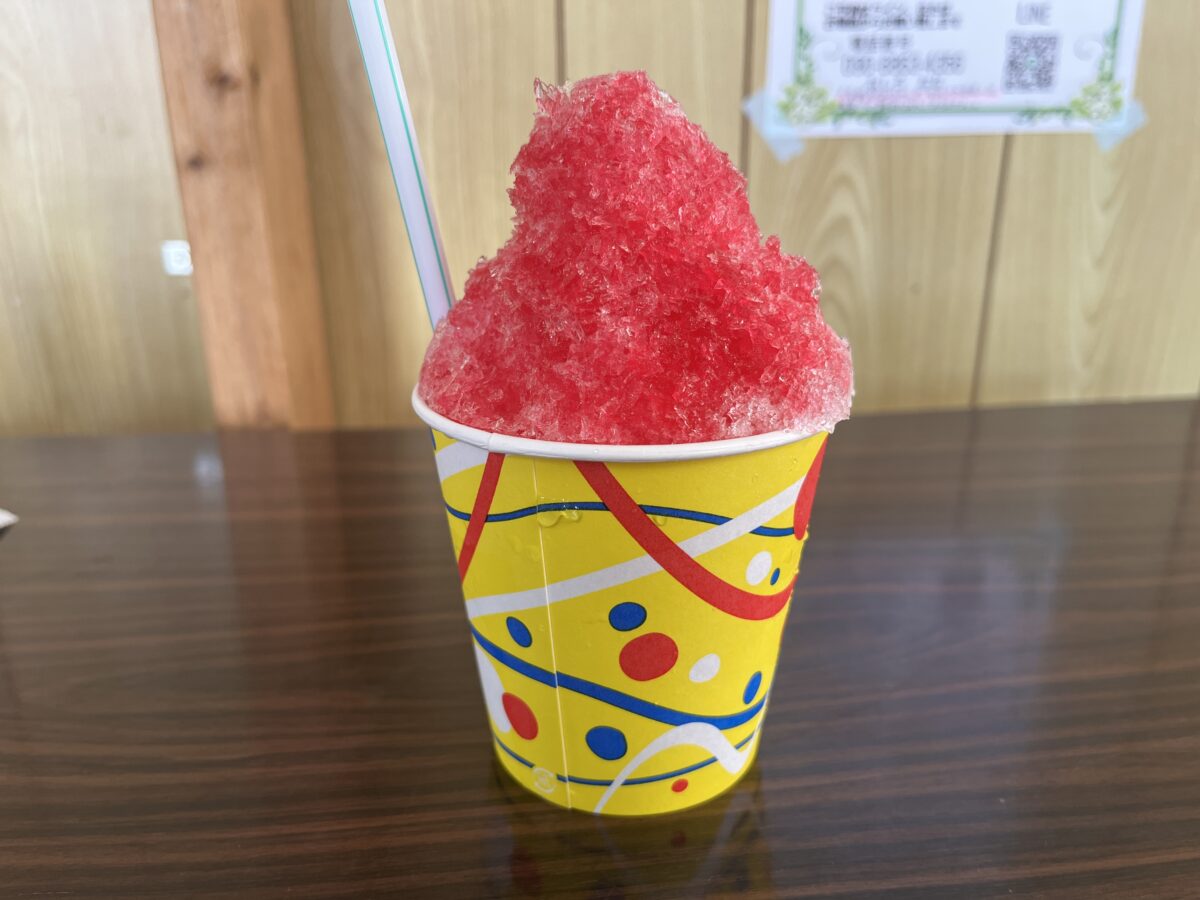 ぜんざいがなかったので、かき氷を注文。世間の相場がわからないが、100円は安い気がする。味は、まぁ、パーラーで食べるかき氷です。因みに、ストローだったので、食べるのに時間がかかりました。できればスプーンが欲しかった。