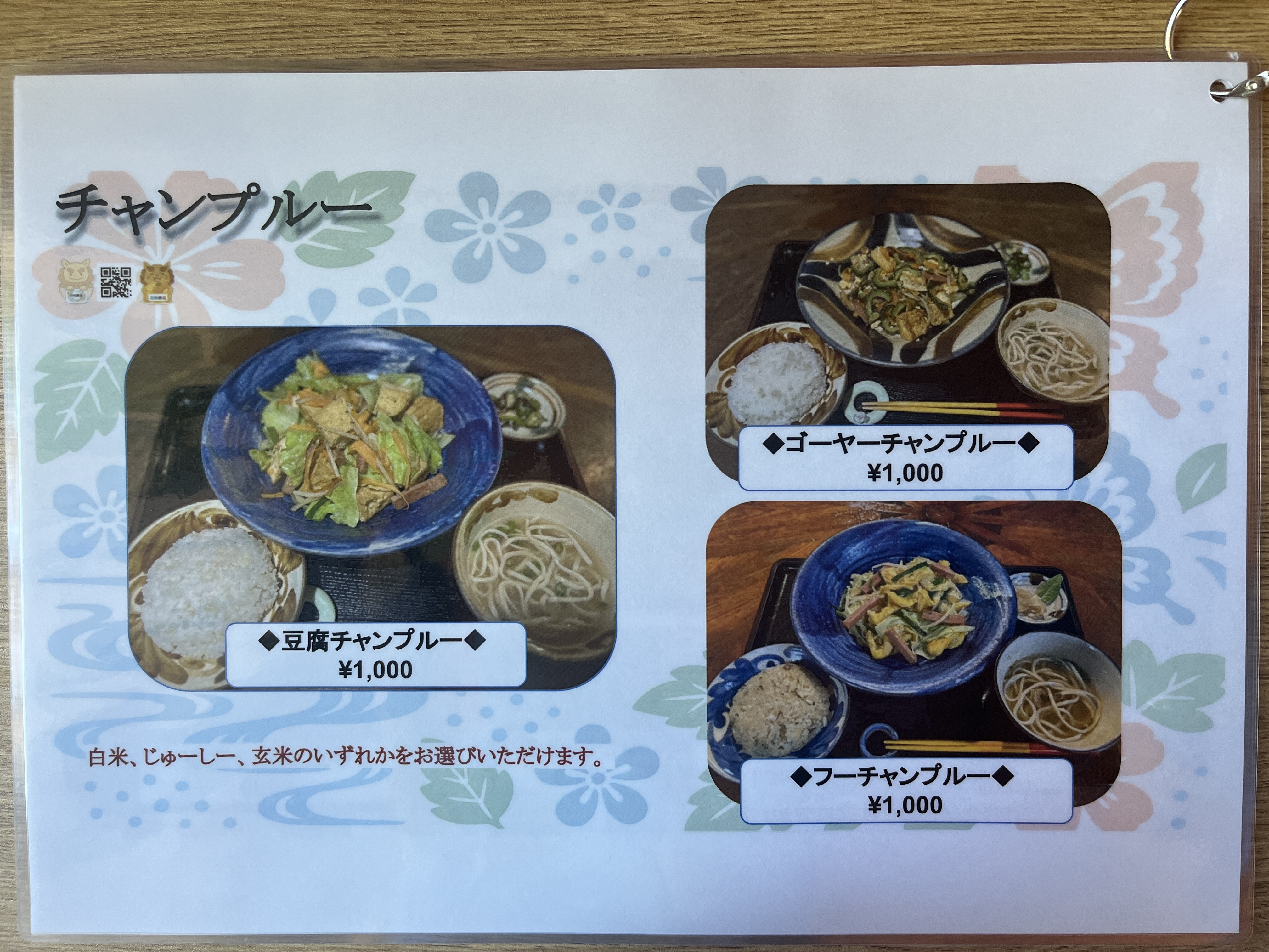 沖縄そば以外にも、各チャンプルーがありますね。みそ汁がわりに、小さいそばが付いてるみたいですね。