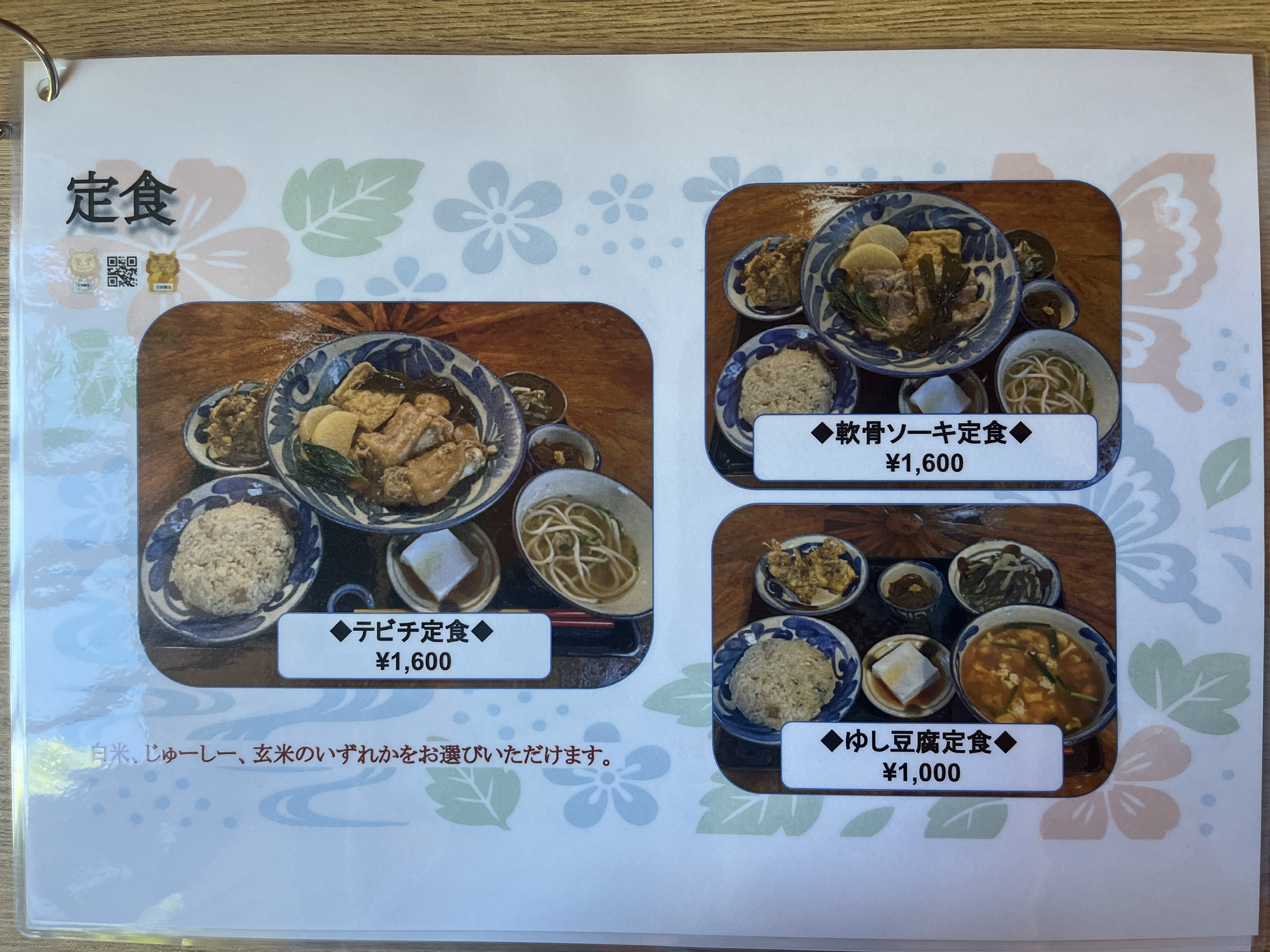そして、テビチ定食、軟骨ソーキ定食、ゆし豆腐定食もあります。最近は、観光客にも、ゆし豆腐の人気が上がりつつありますよね!