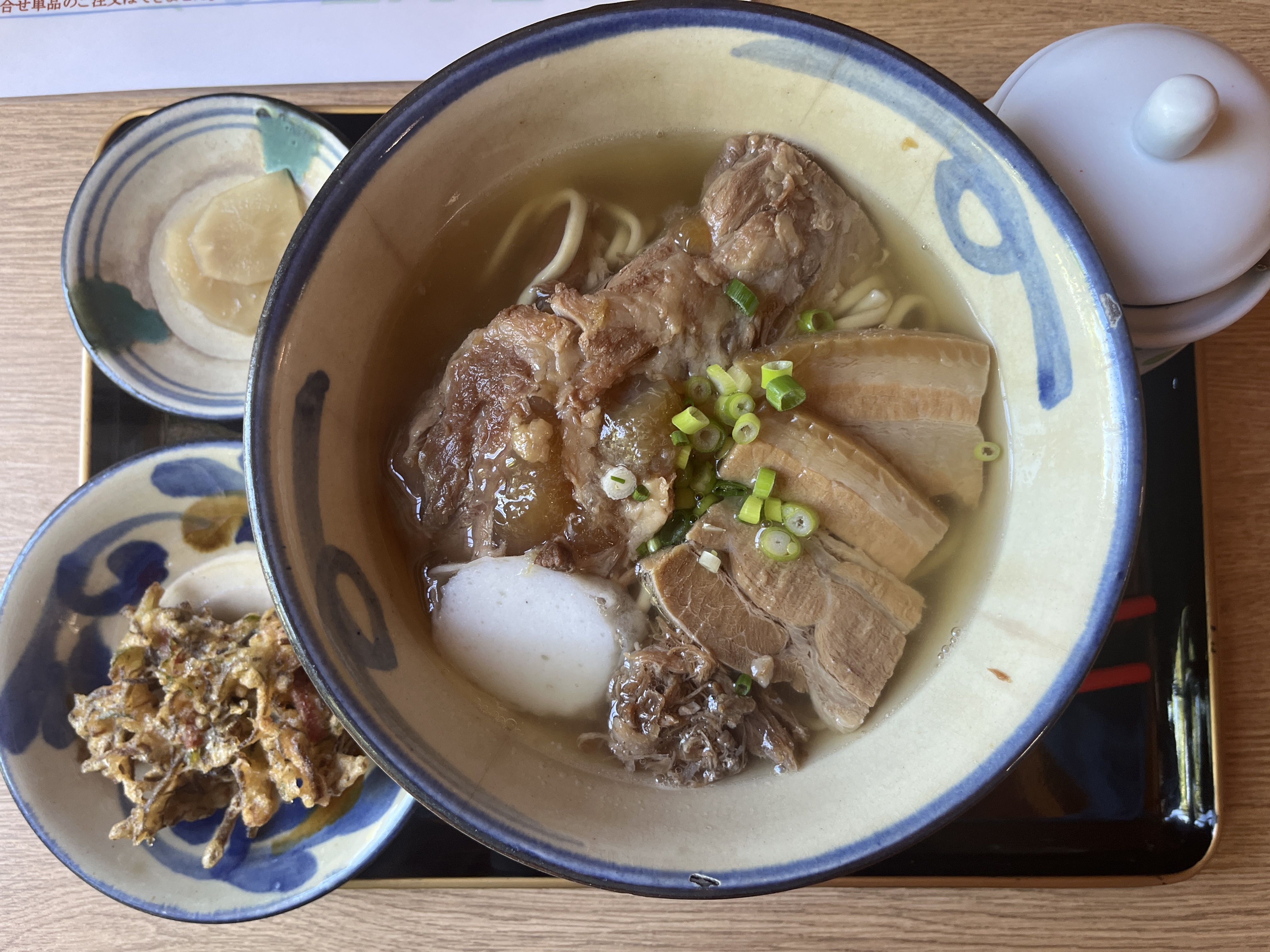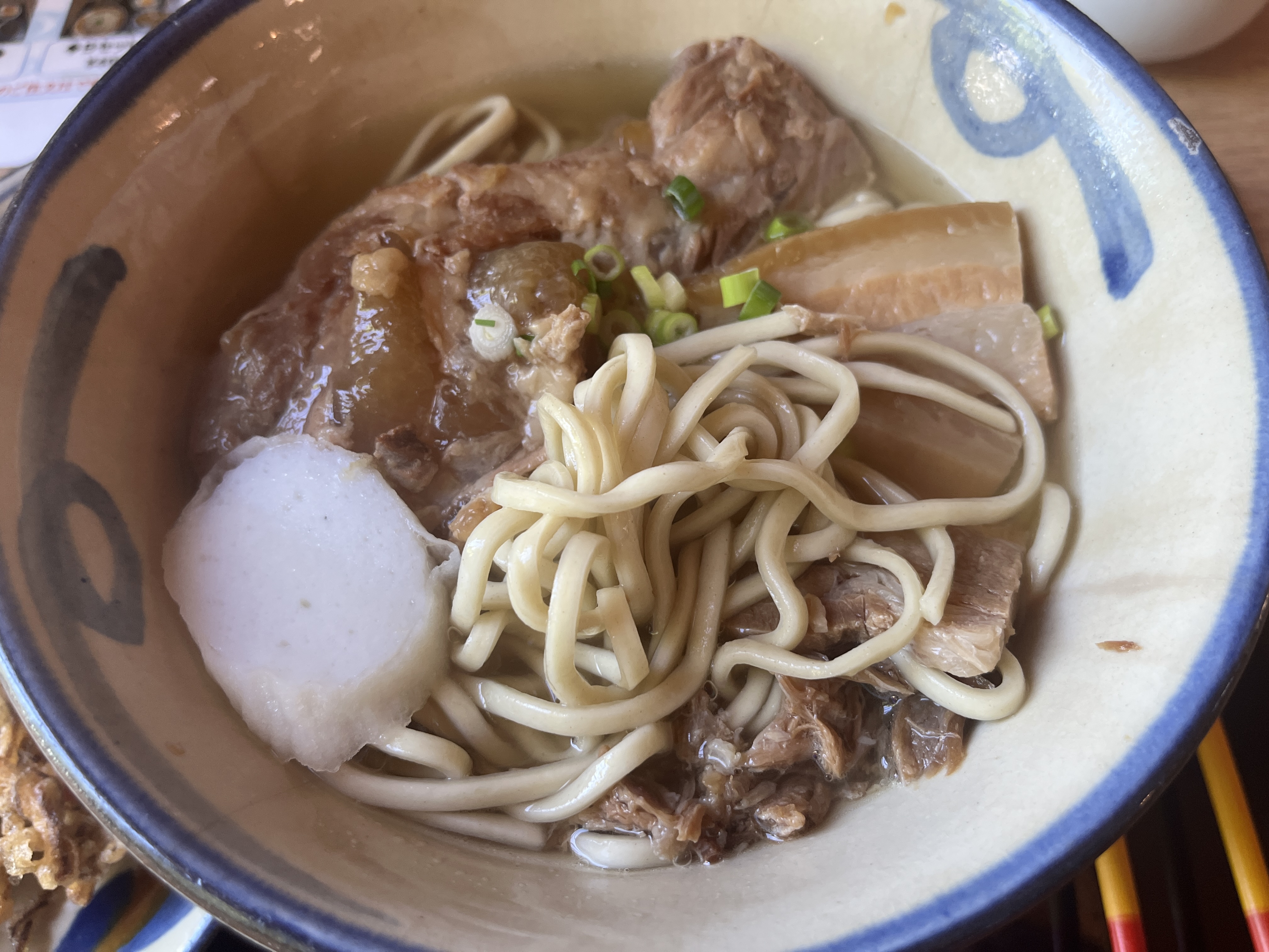 まず軟骨ソーキですが、見てわかるようにサイズがデカい!麺が見えないほどデカい!食べ応えあり!味はちょい濃いめだが、甘さは控えめですね。食感はトロトロ柔らかい。Goodです!