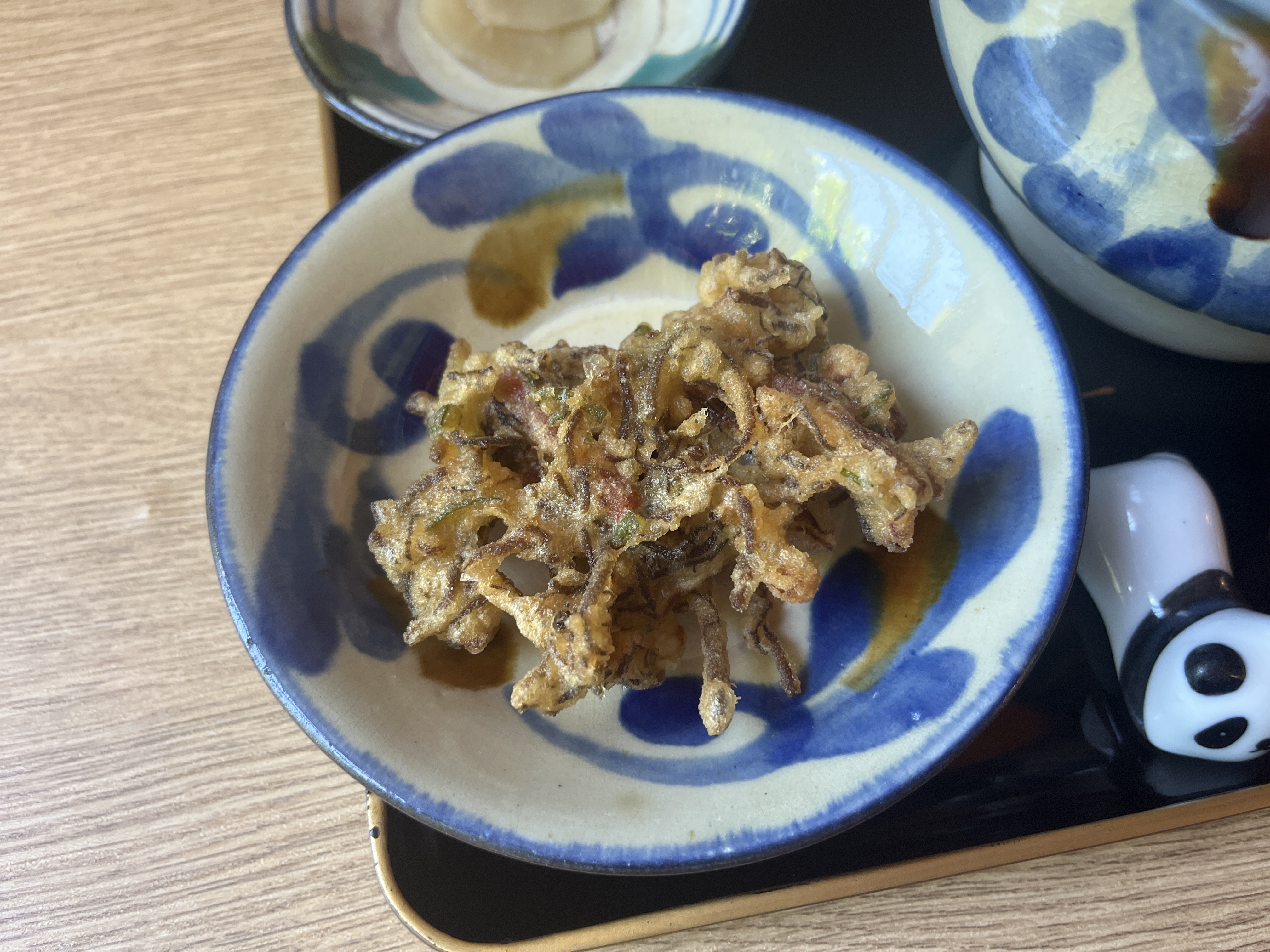 いつもはジューシーを頼むのですが、こちらのジューシーはフーチバージューシーとなってまして、私はよもぎが苦手なので、セットも頼めず。って事で、代わりに、もずく天ぷら(単品)を注文してみました。