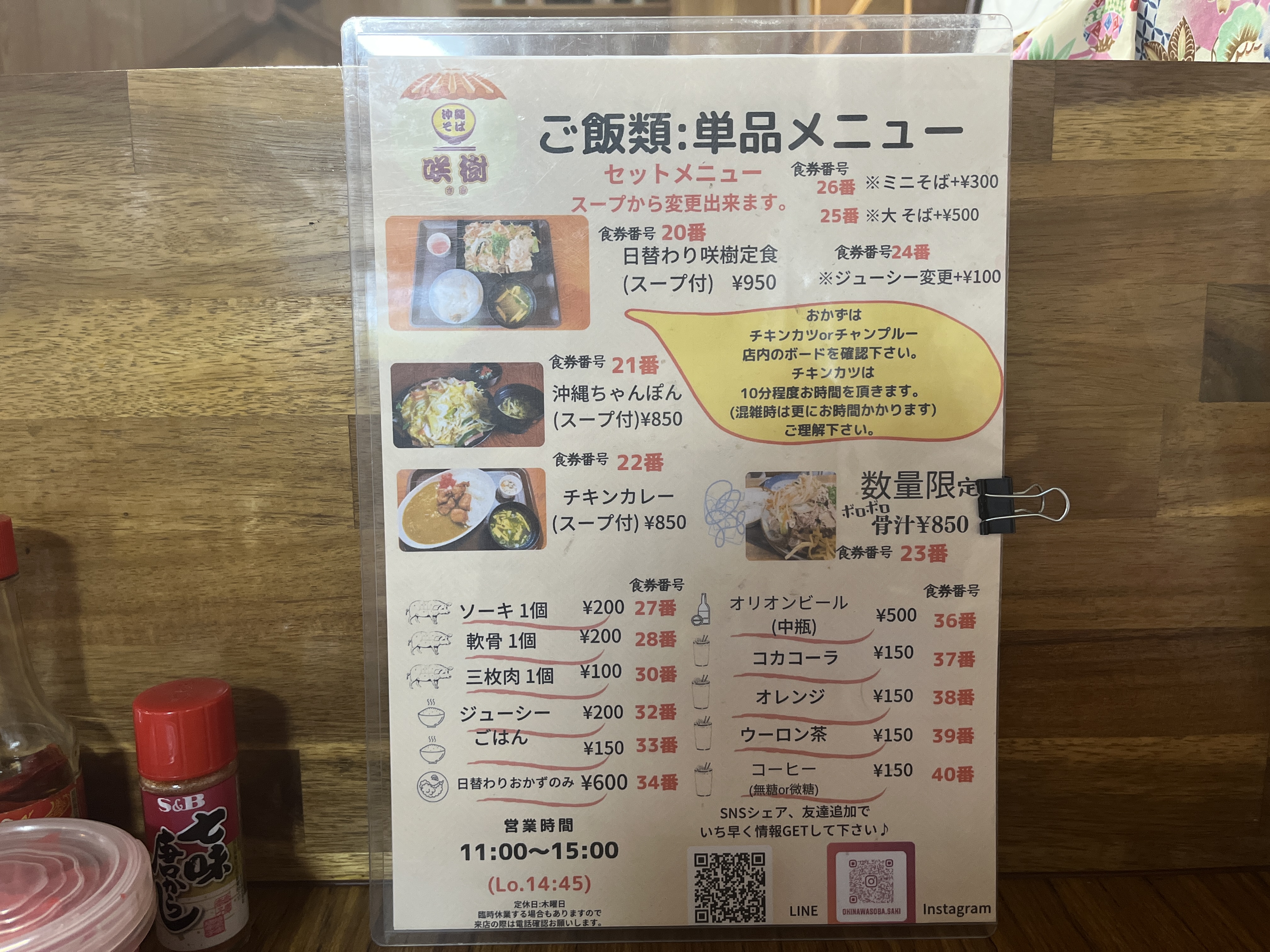 宜野湾市「沖縄そば 咲樹」に訪問。5年前から「行きたい店リスト」に入ってたが、全然行けなくて、今に至る。やっと訪問できた。