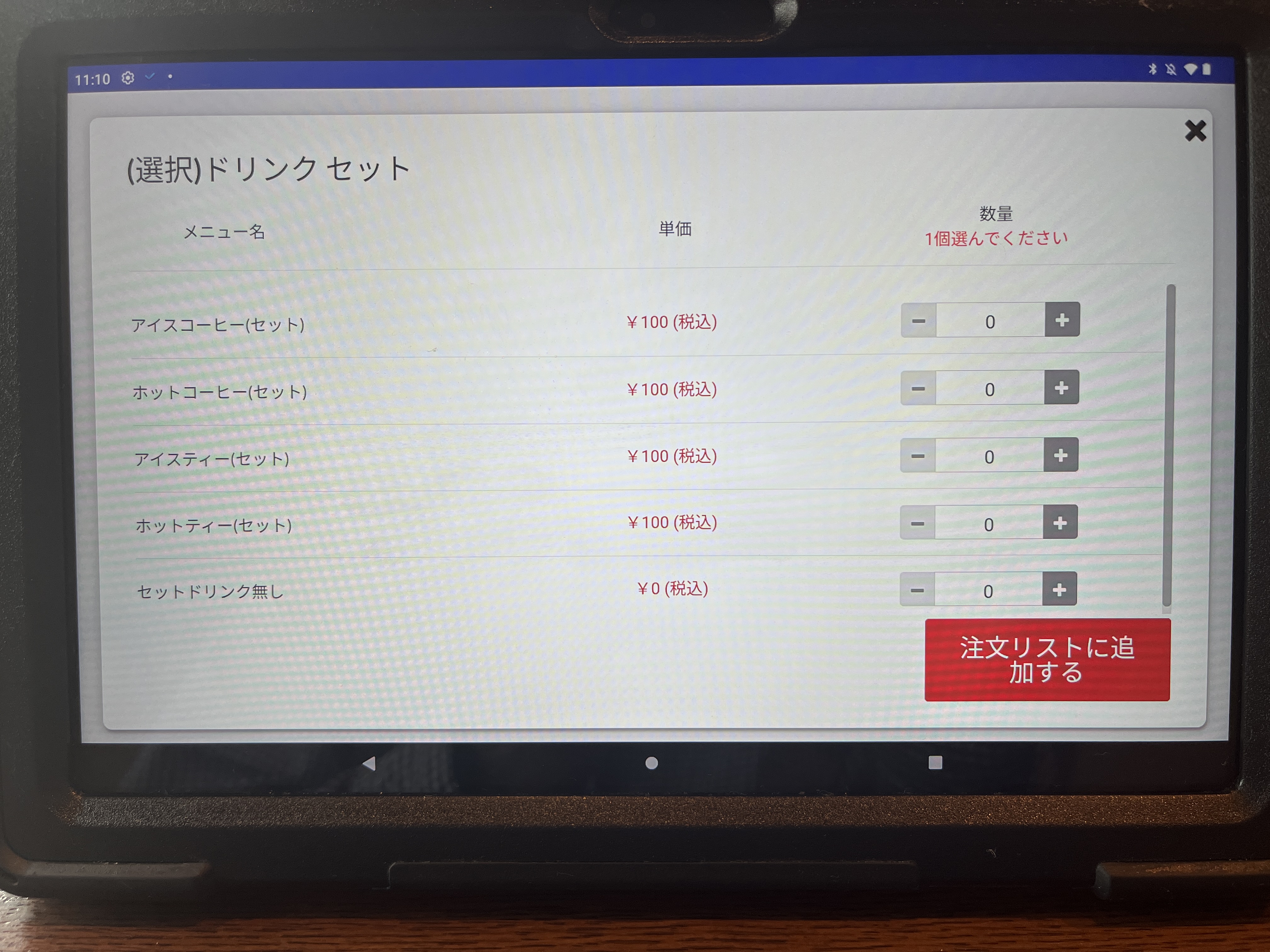 タブレット注文