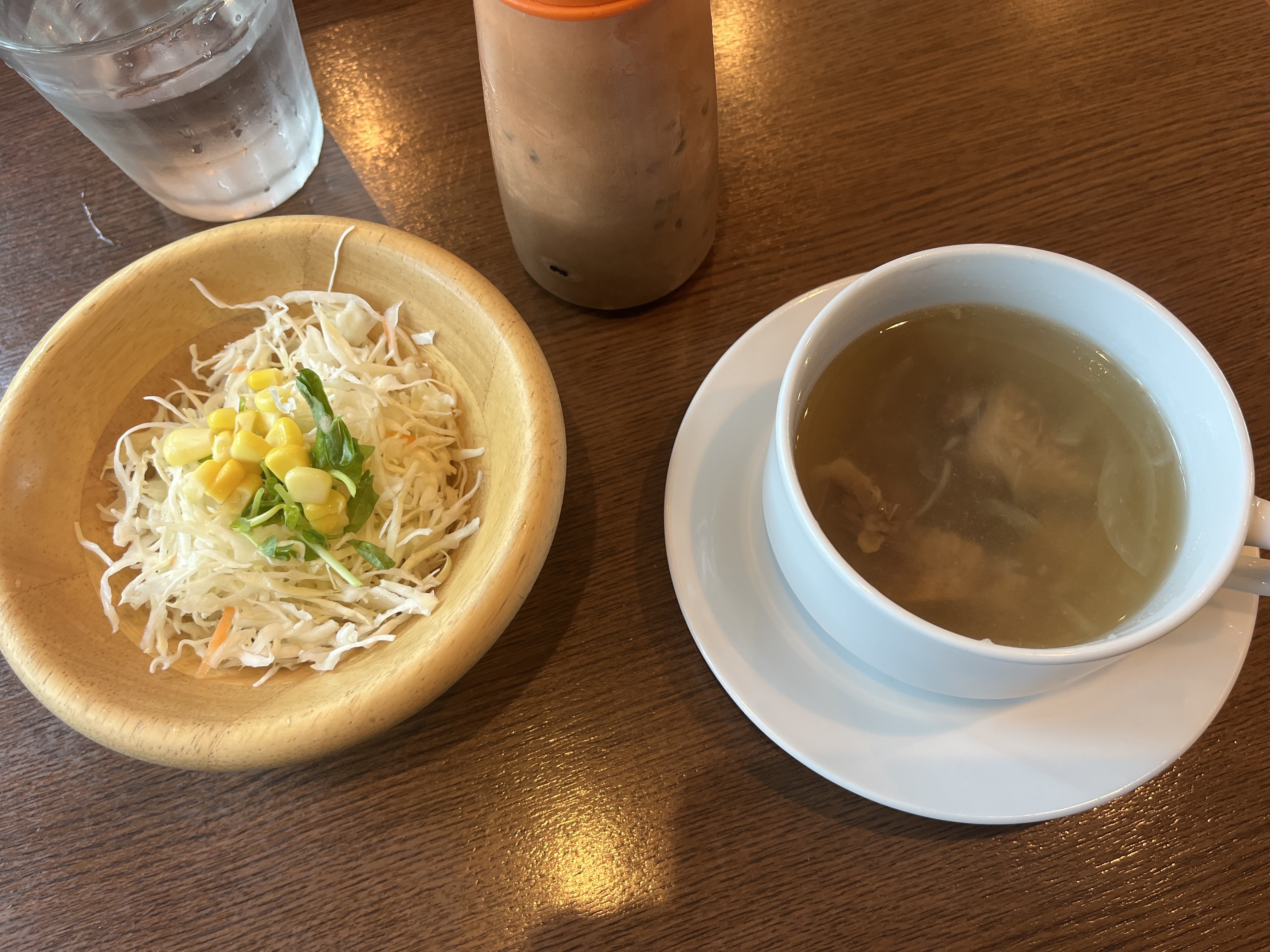 注文後まもなく、スープとサラダが提供されます。タブレットにも記載されてましたが、牛すじのスープです。コレは、普通に美味しいっすね。大きめの牛すじが、そこそこ入ってて、コレだけでも食事した感があります。満足度高い!