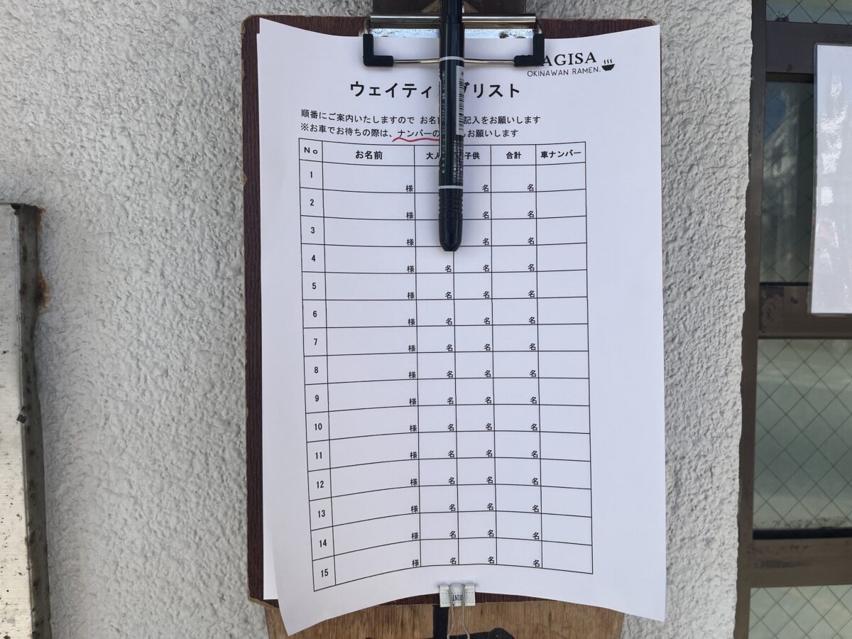 入口の左にウェイティングボードがあります。満席の場合は、コチラに名前を書いて外で待ちます。