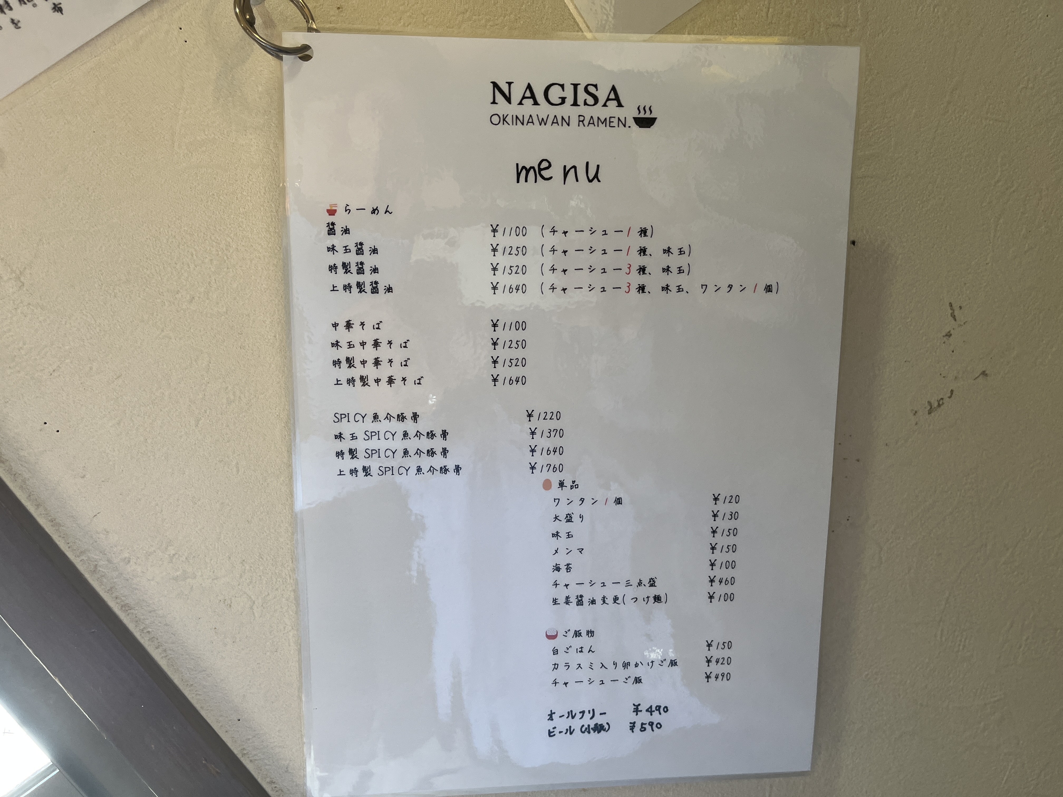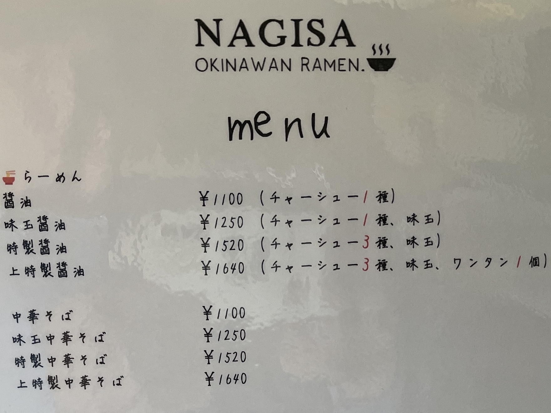 与那原町『NAGISA』自家製麺と無添加のスープ。中華そばを食べてきました