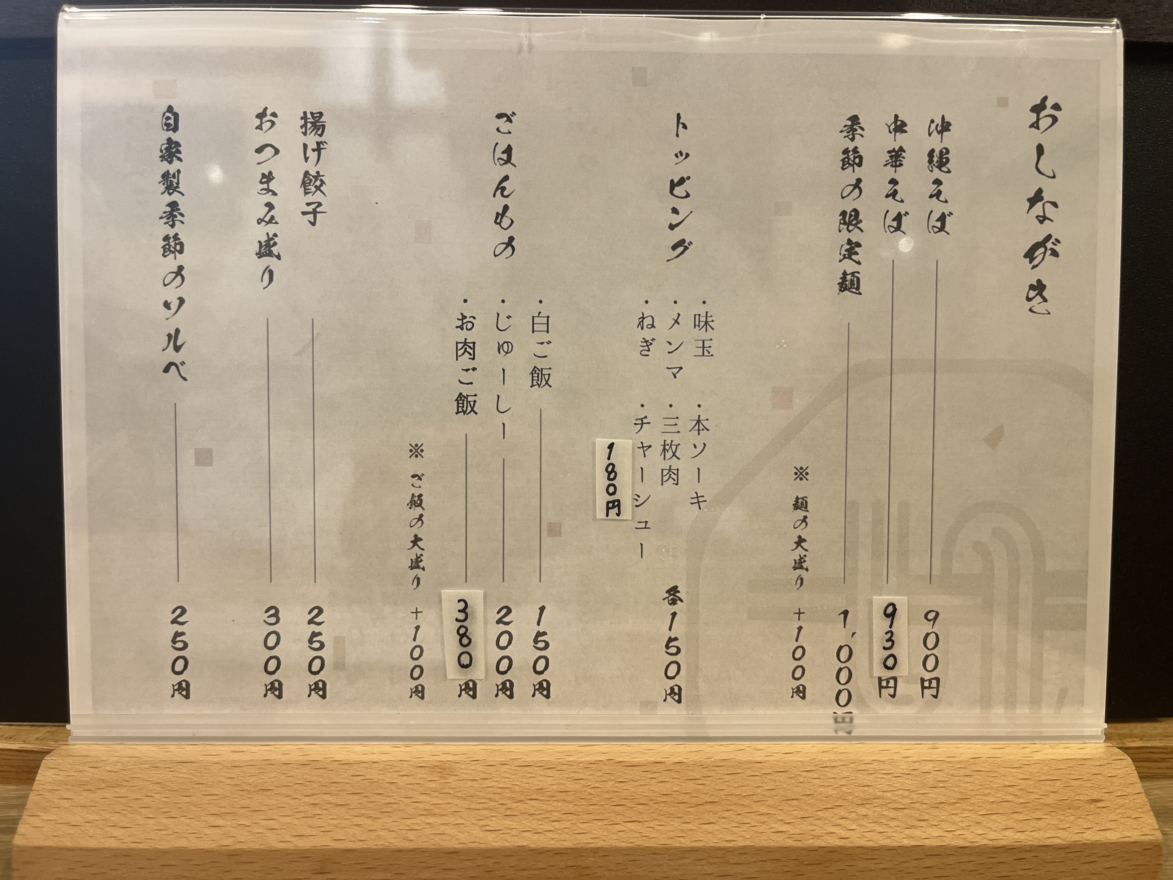 5月の訪問時とメニューが若干変わってます。季節の限定麺と、揚げ餃子が増えてますね。