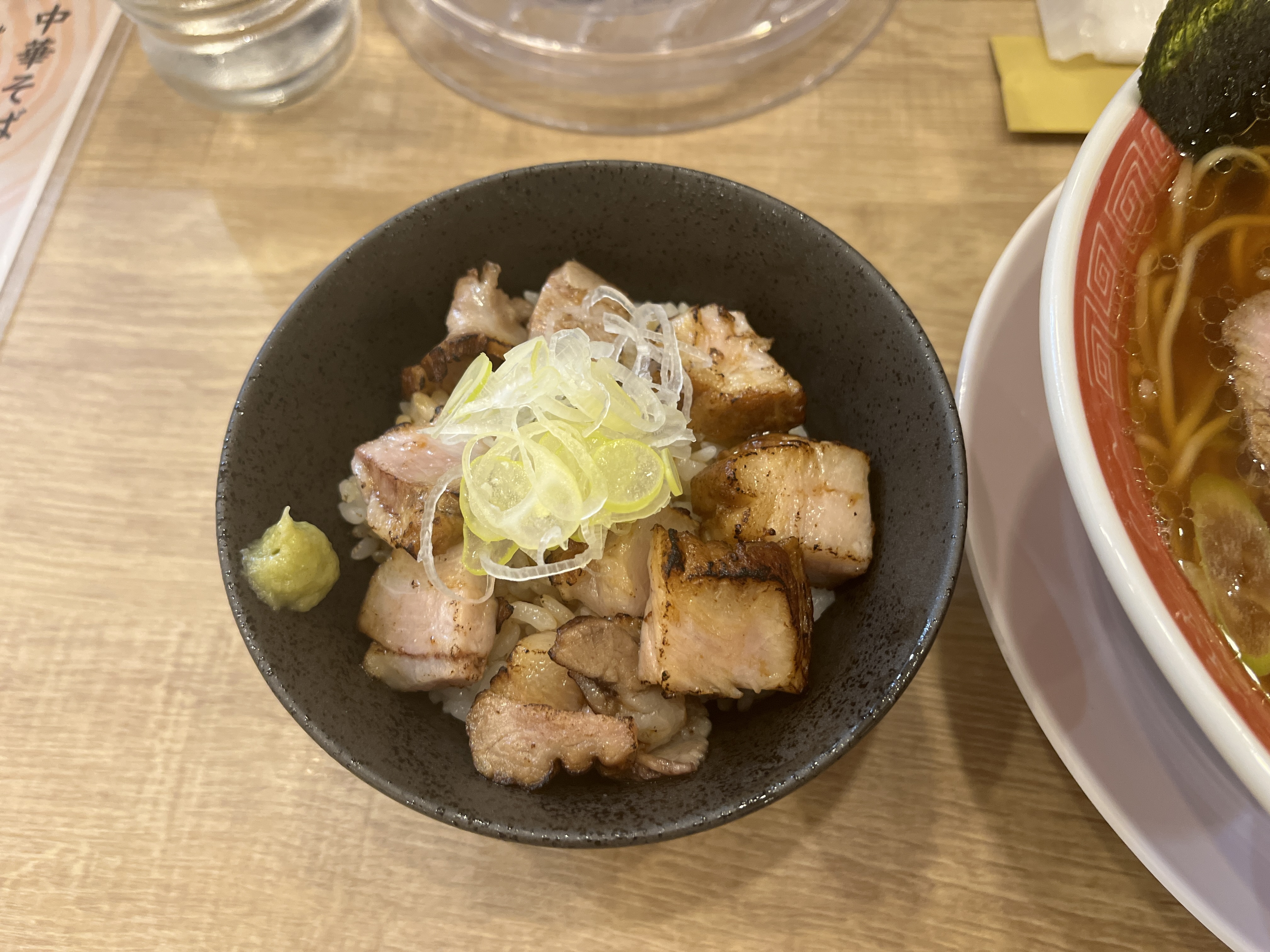 平日限定のミニ!やっぱ、お茶碗は小さいです。でも見た通り、肉がてんこ盛りです!コレは絶対に食べた方がいい!私的には、ラーメンに付いてくる飯物でNo.1ですね!めっちゃ美味いっす!そして、この炙りの香ばしさもヤバいです!ラーメンのサイドメニューとか呼べない!Wエースです!