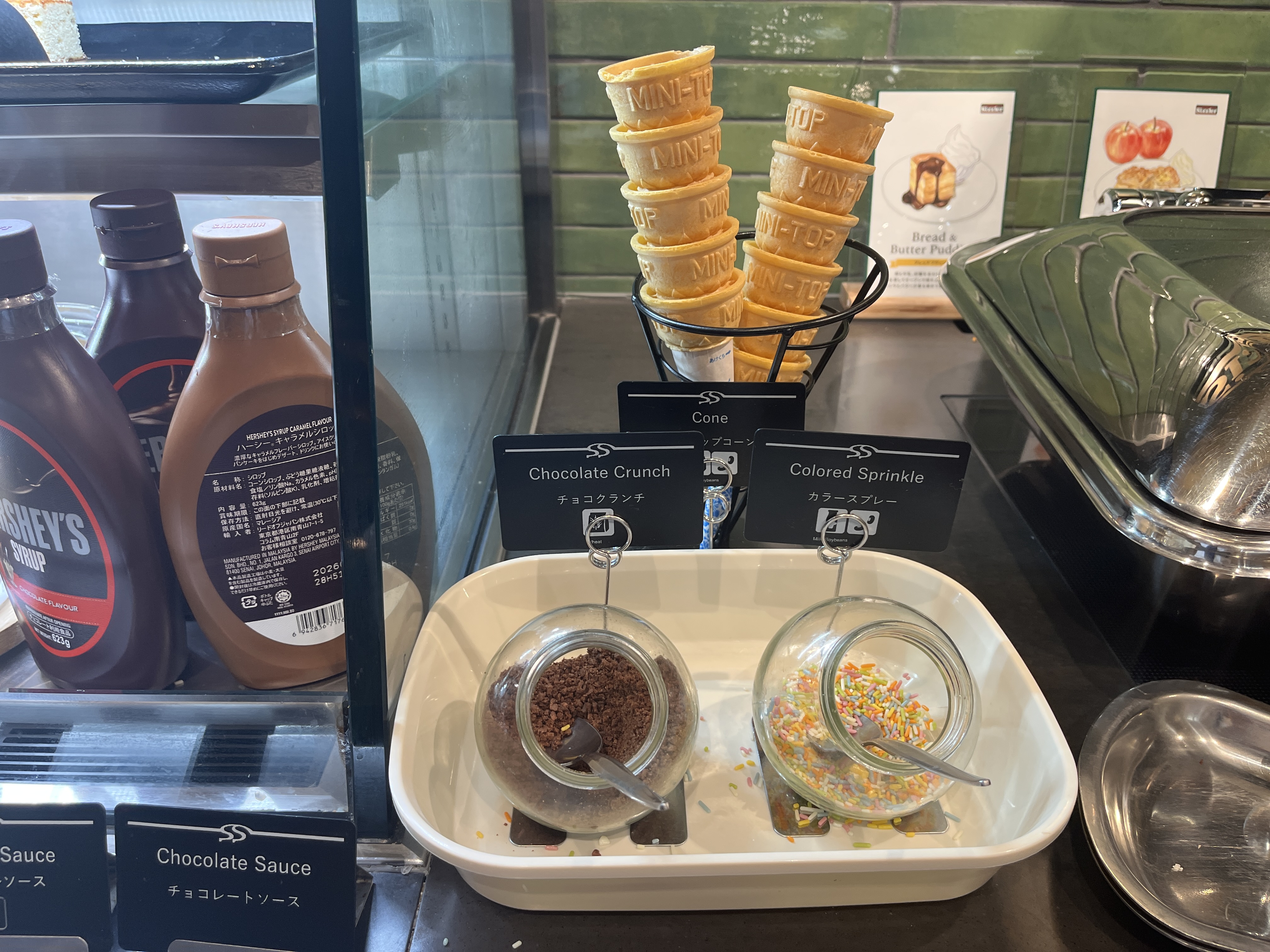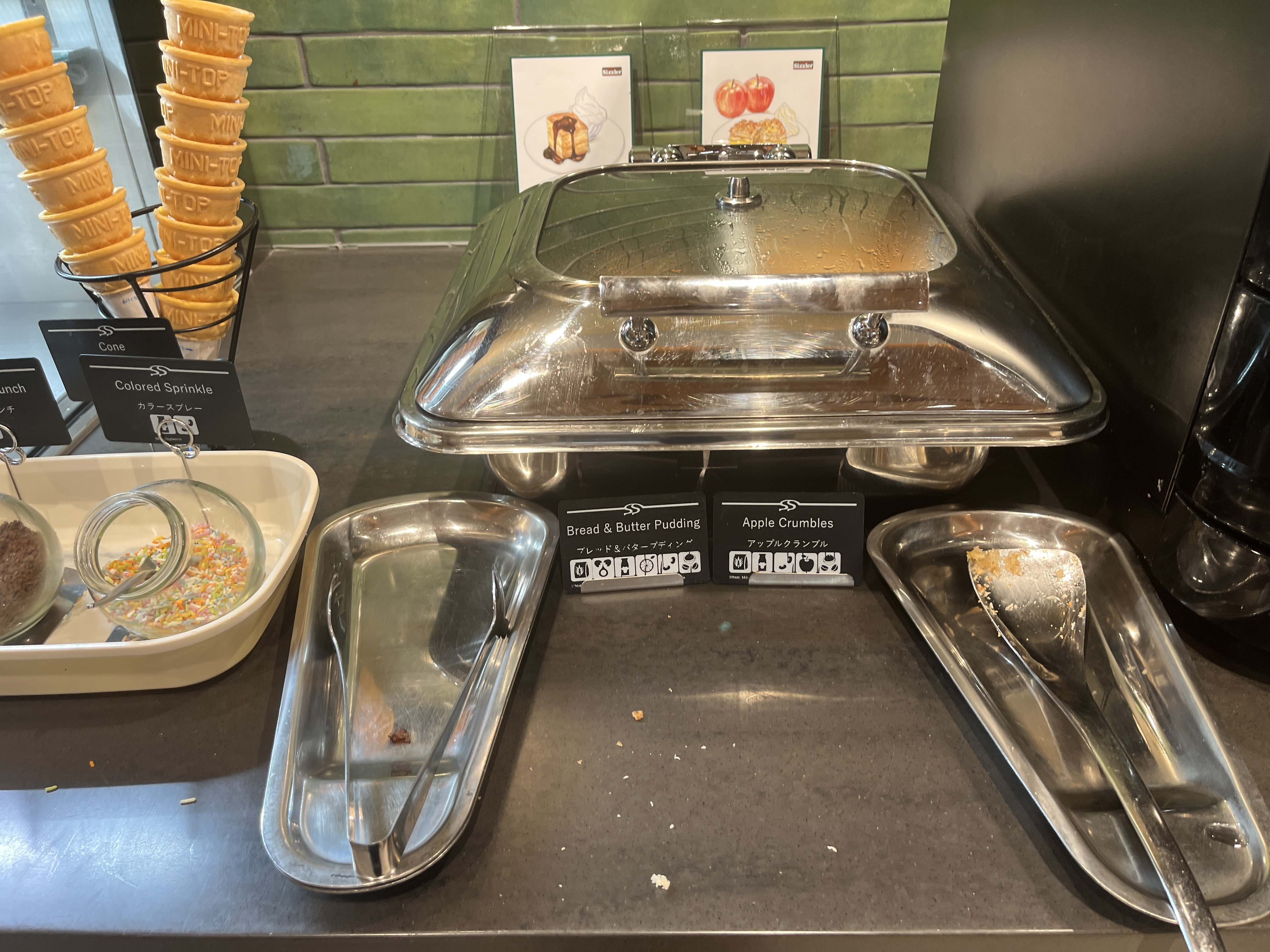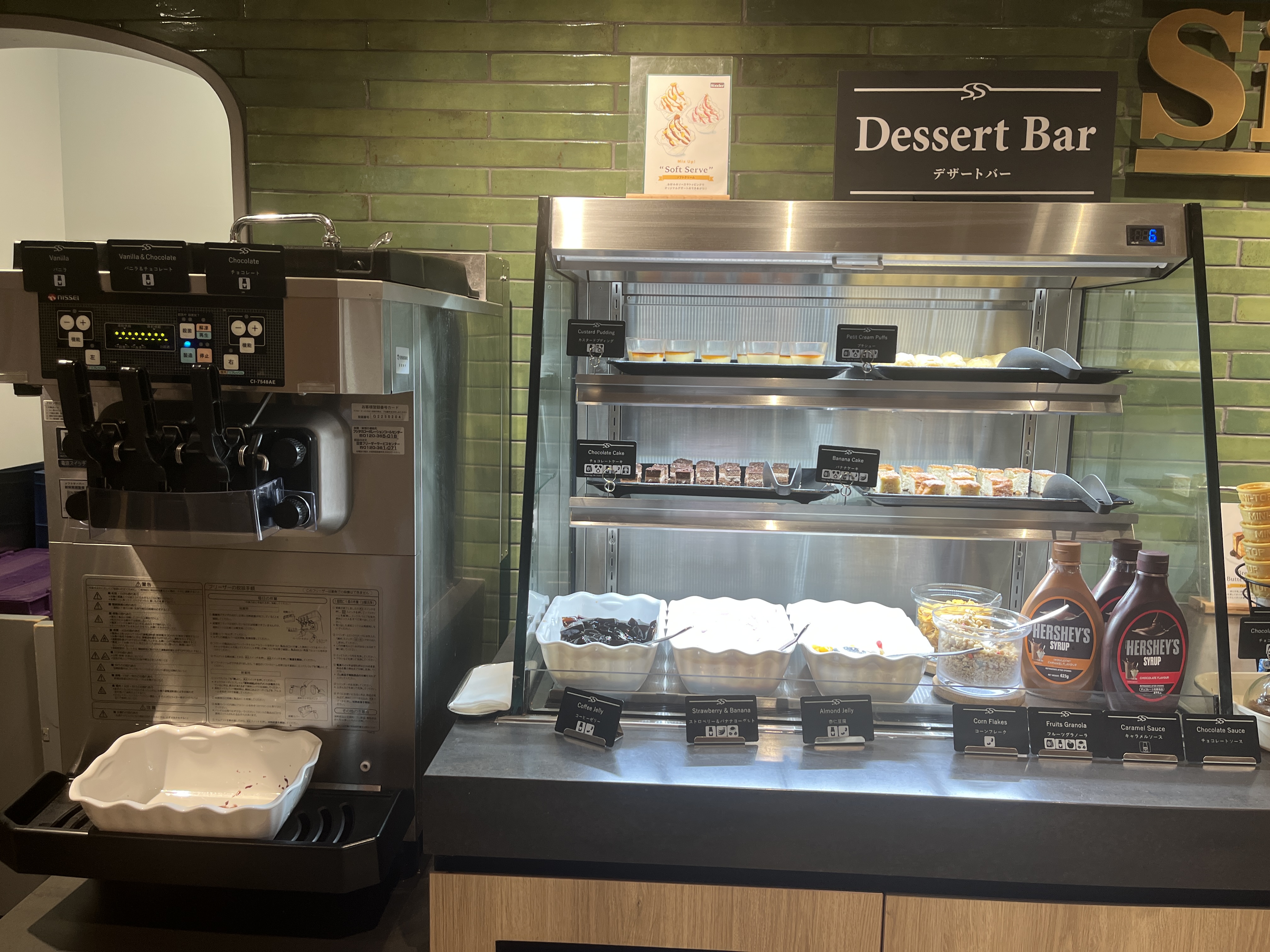 プリン、プチシュー、チョコケーキ、バナナケーキ、コーヒーゼリー、ヨーグルト、杏仁豆腐、ソフトクリーム!