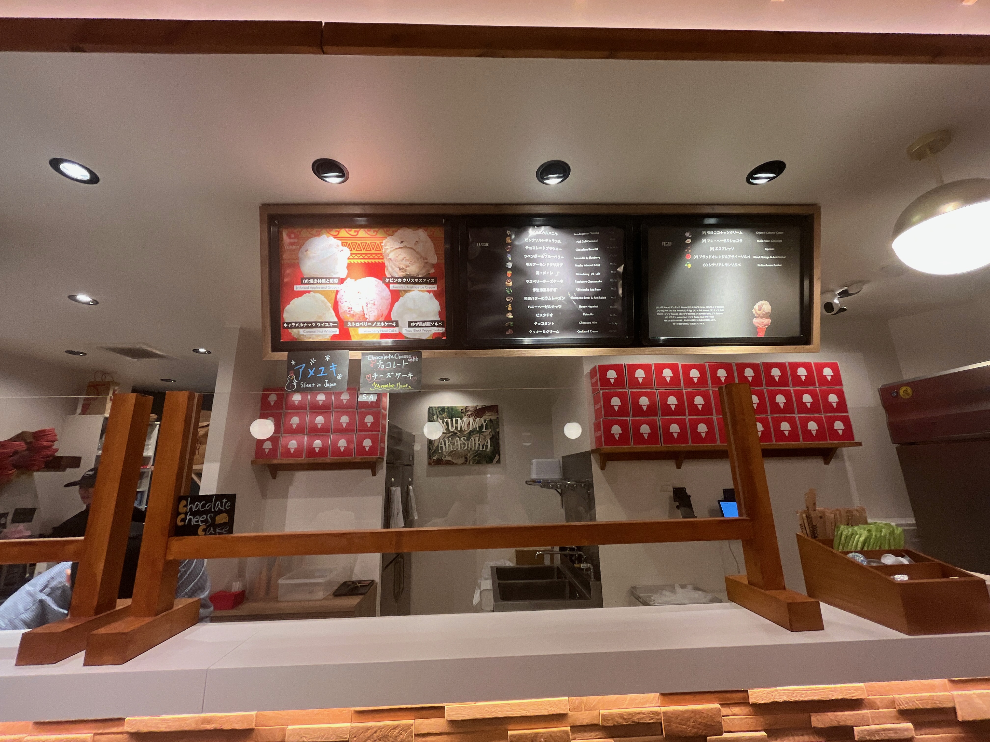 店員さんの接客対応が、すごく良いので、初来店でしたが、緊張感なくスムーズに注文出来ました。しかし、スムーズ過ぎて、コーヒーを注文するタイミングがわからなかった。アイスを注文して即会計!って感じだった。ドリンクを注文する人は少ないのかな?