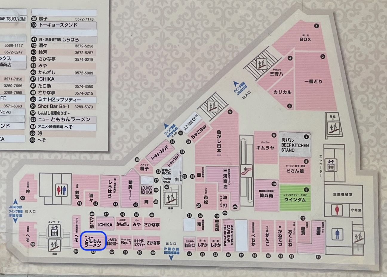 新橋ニューともちんは、新橋駅前ビル1号館のB1にあります。