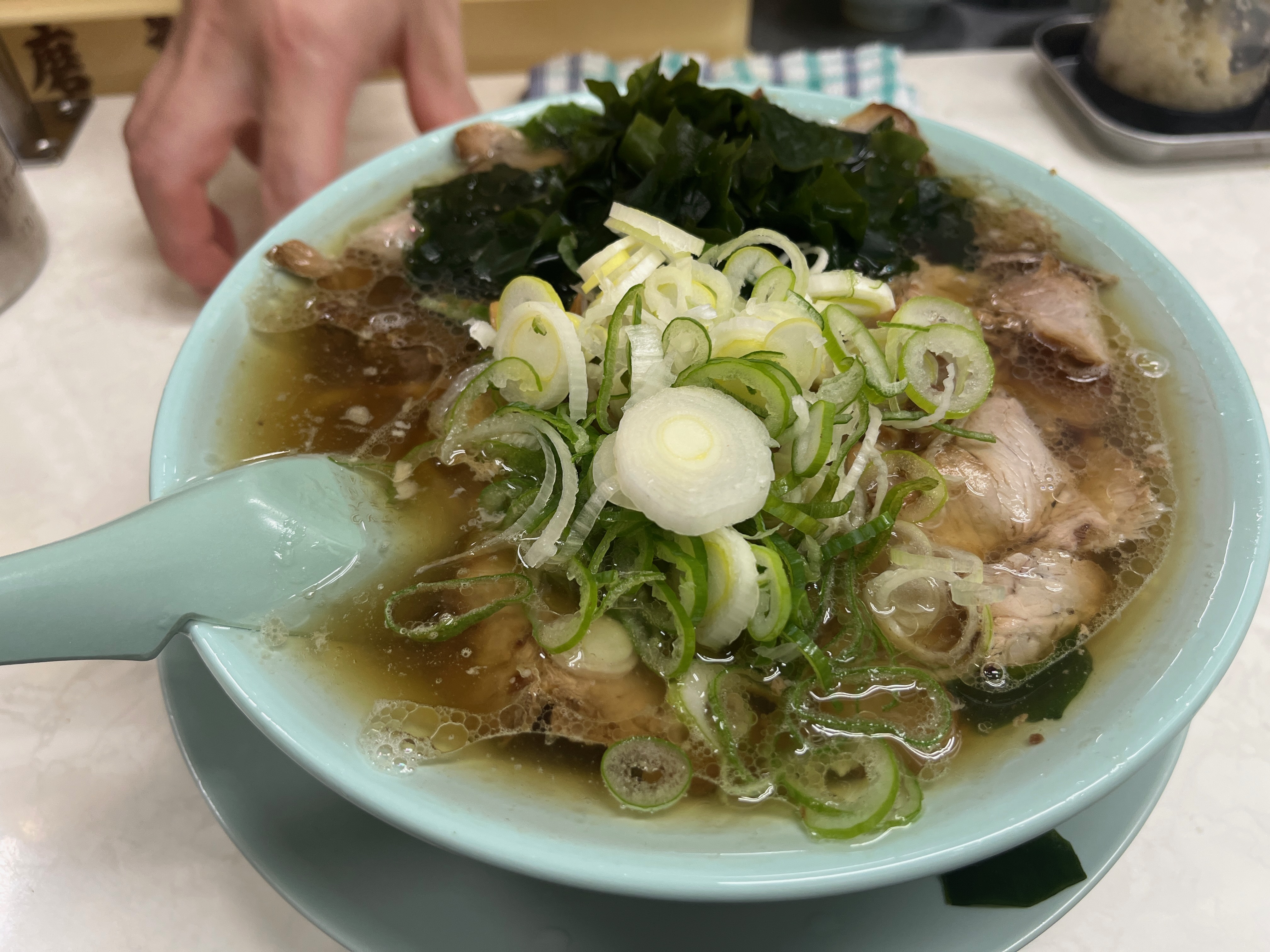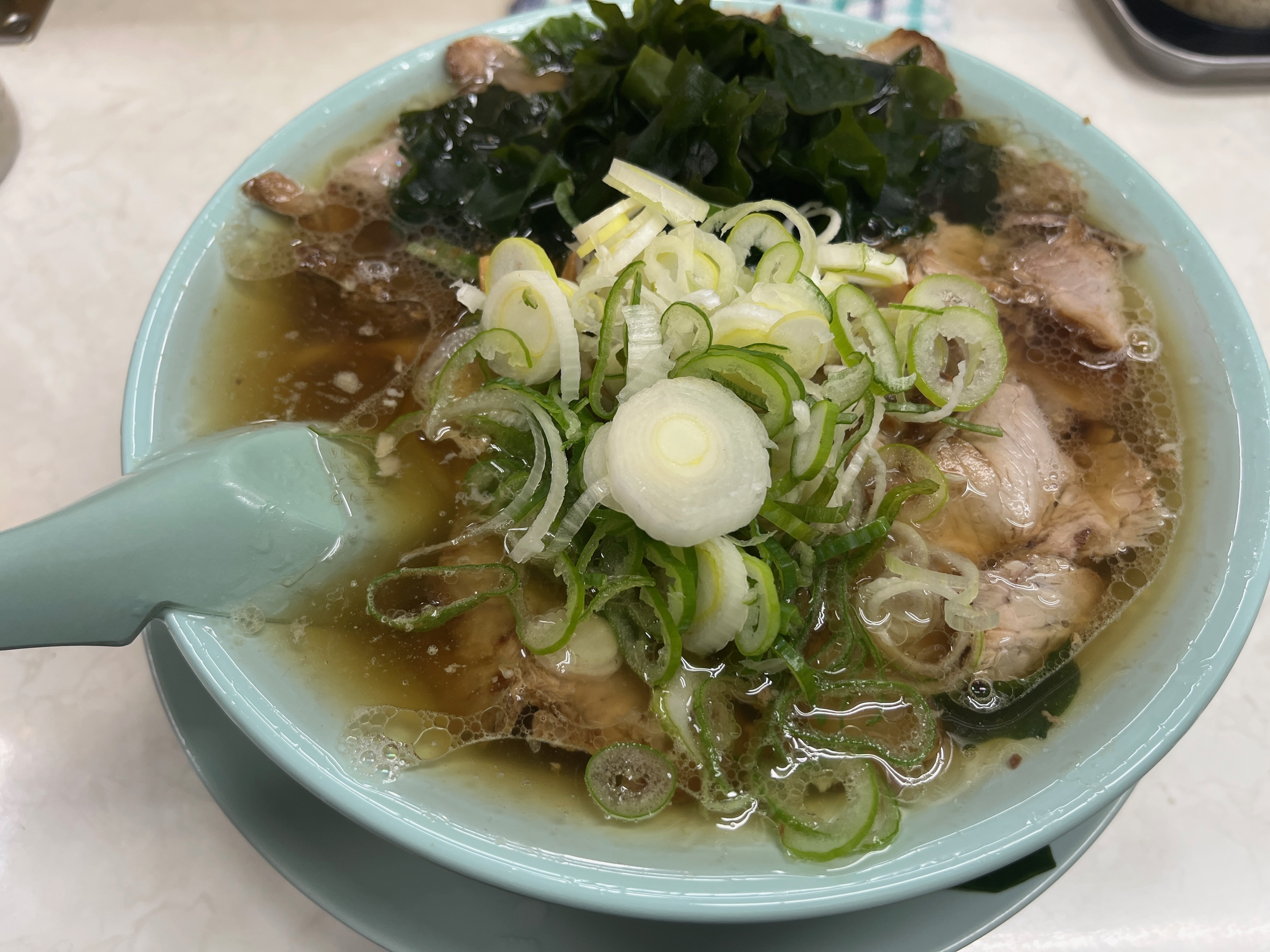 今どき、コレで750円(ワカメ+100円)は安いでしょ!しかも、ココ、東京でしょ!めっちゃコスパ良すぎる!スープが波々と入ってて、しかも熱々ってのがポイント高い!味は、ちょっと塩っぱいので、ほとんどの客がスープは残してました。完飲はしない。