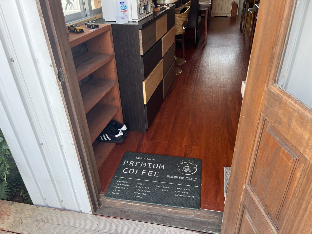 ドアを開けて、ココで靴を脱いで、靴箱にイン!