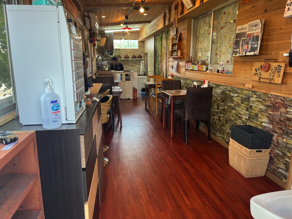 細長い店内で、2名用テーブル 4卓と、2名用カウンター 1卓ですね。