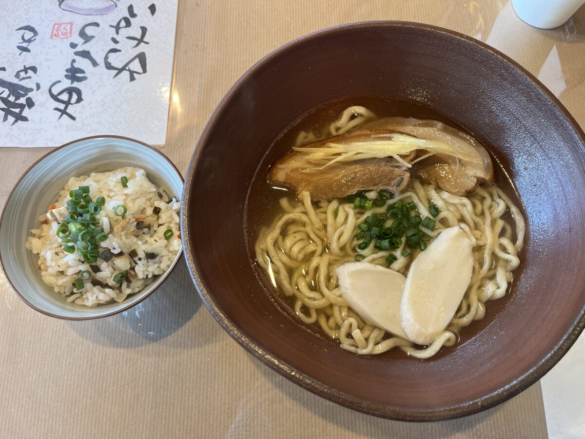 今どき、沖縄そば単品で1000円を超えるのも珍しくないのに、ジューシーがセットで、ジャスト1000円って、お財布に優しい。