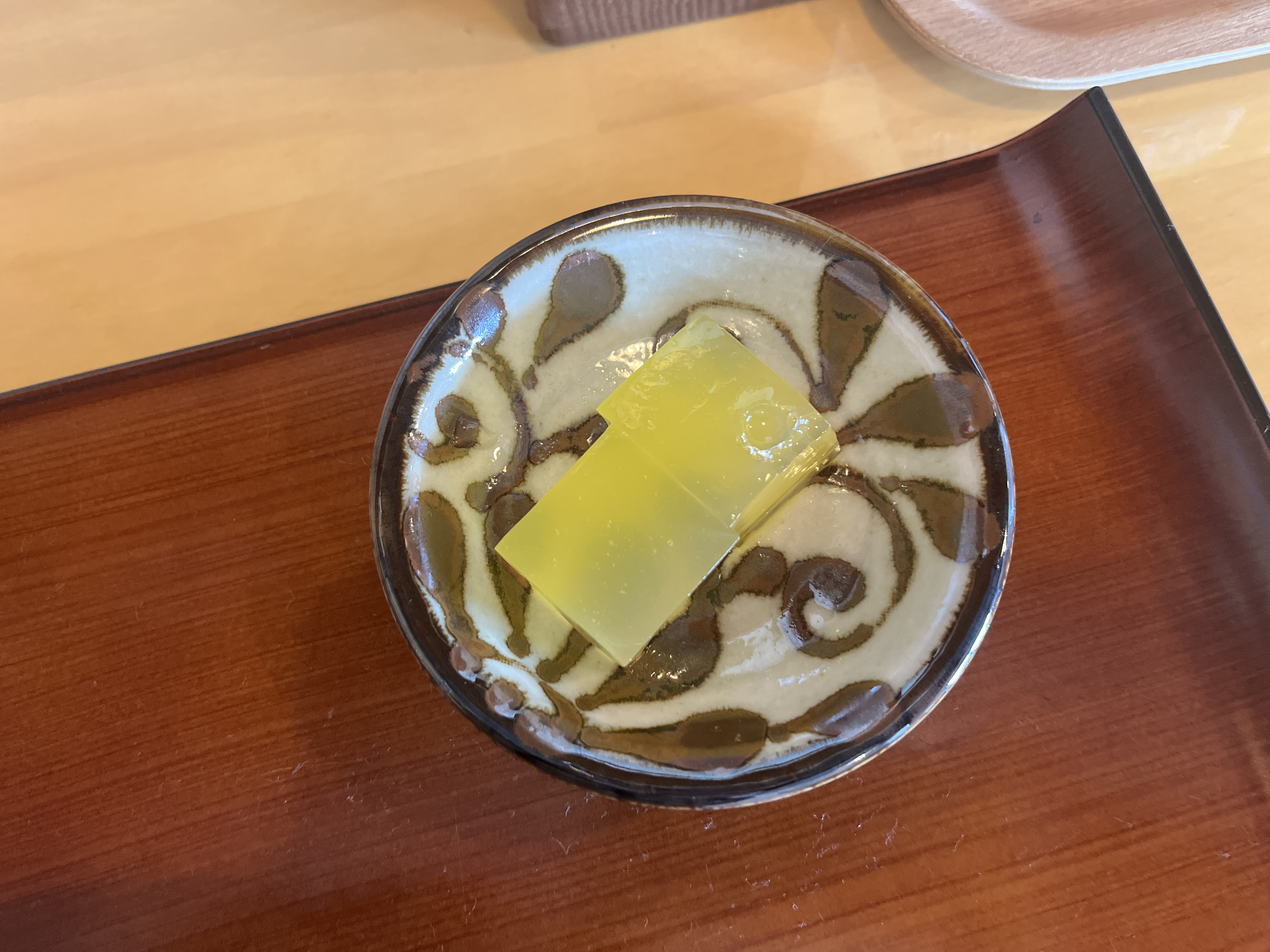 シークワーサーのゼリーでした。普通に美味しい!ネットで他の人の写真を見ると別モンもあるっぽいので、日替わりかな。