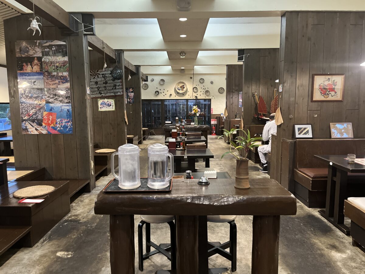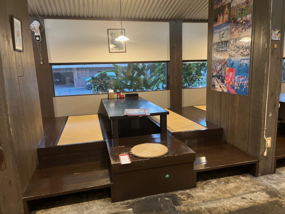 そして両端には4〜6名用のテーブル。左側は掘りごたつ、右側はボックス席