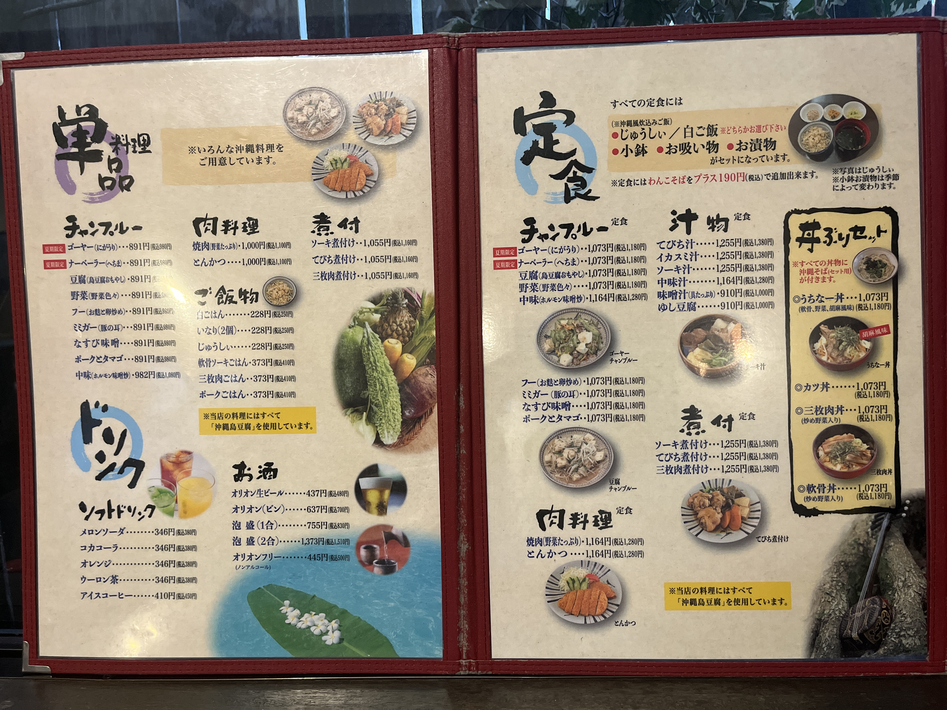 更に更に、チャンプルー、煮付け等の単品料理。そして定食まで!メニュー数がハンパないなぁ。コレは、初見だと、かなり迷いますねぇ。。。