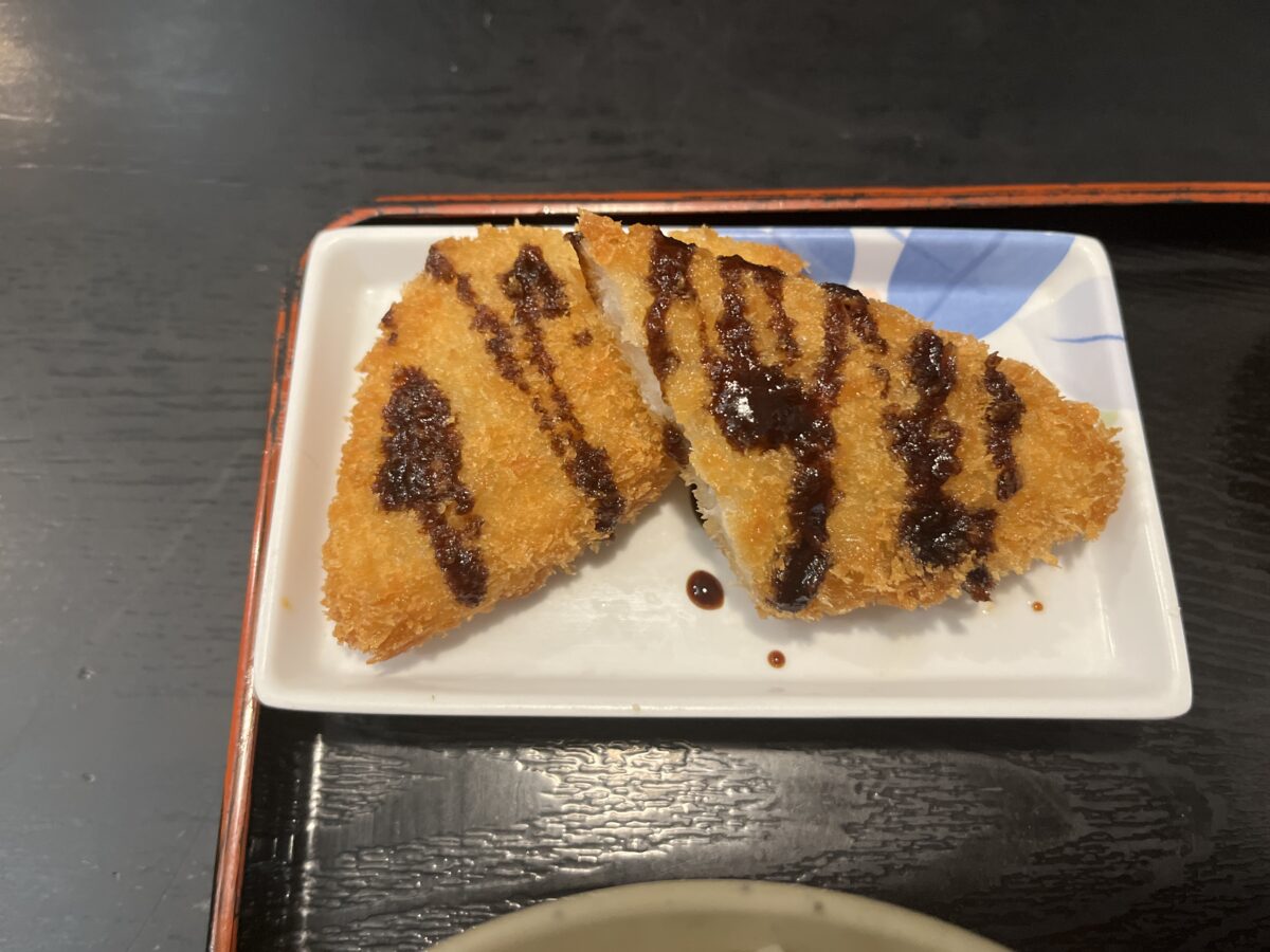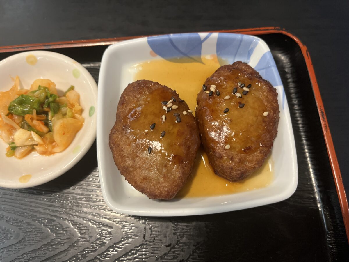 魚フライが2切れ、ハンバーグが2個。小ぶりながらも2個づつあるので食べ応えあり!味は良くも悪くも外食の味って感じです。普通に美味しい。ってゆーか白米が進む!コレはジューシーじゃなくて逆に白米で良かったかもしれない。箸が止まらない!!