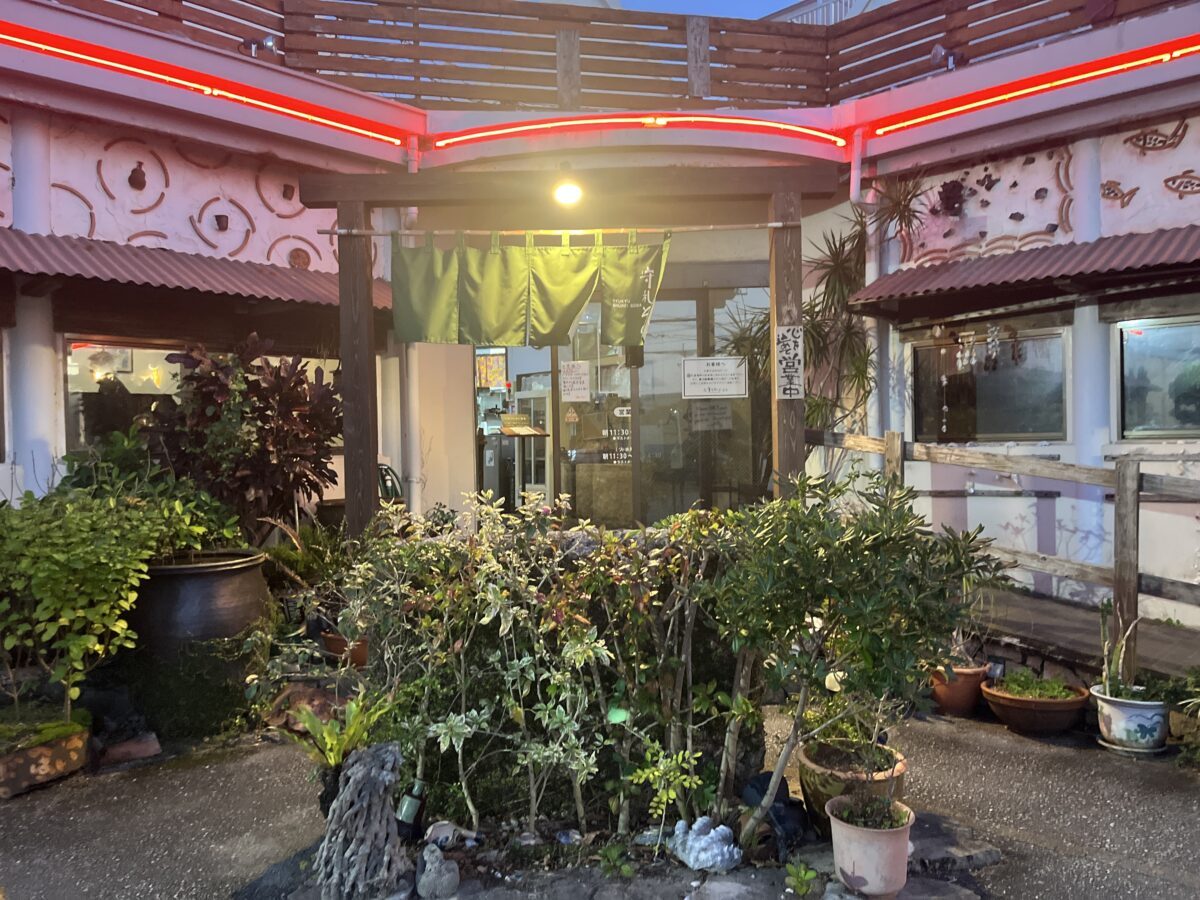那覇市高良「守礼そばと沖縄料理」に訪問。夕方だからなのか、店が古いからなのか、写真がちょいエモい!iPhoneで撮ったのだが、写ルンですみたいな写真。