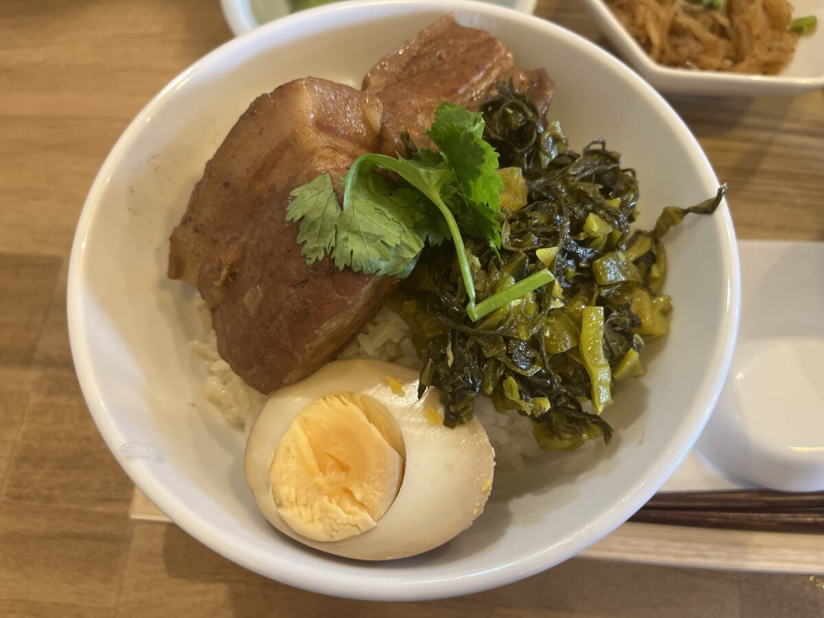 台湾料理で、このビジュアルだと、直感的に、魯肉飯(ルーローハン) って思っちゃうけど、別モンです。控肉飯です。なんて読むんだろ?店主に「なんて読むの?」って聞いたら、ガチで中国語の発音だったので、聞いても、わからなかった。。。そこで、ChatGPTに聞くと、控肉飯(コンロウファン)らしい。とりあえず豚の角煮丼です。