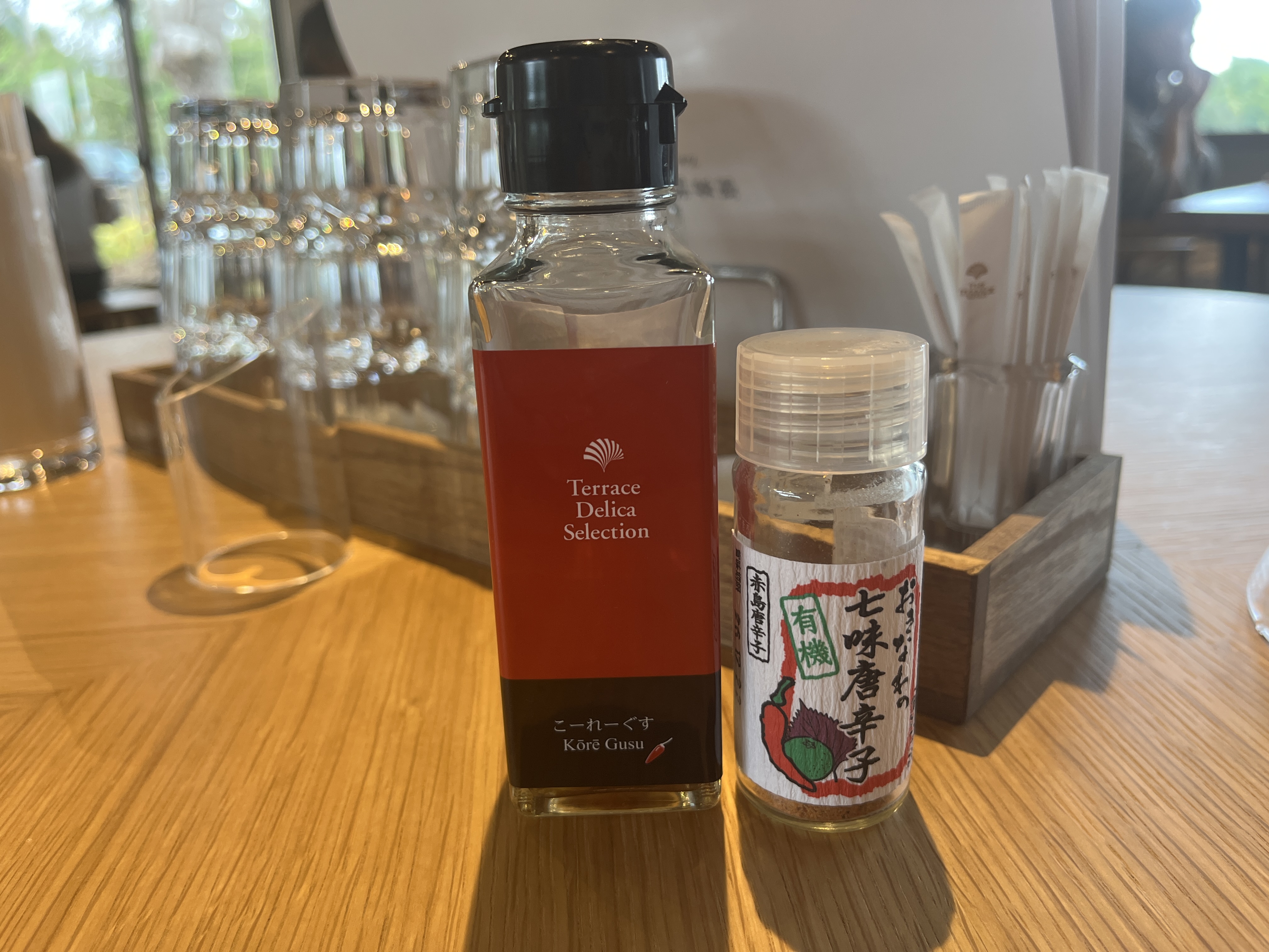 右は七味だね。で、左の瓶は何だろ?って思ったら…