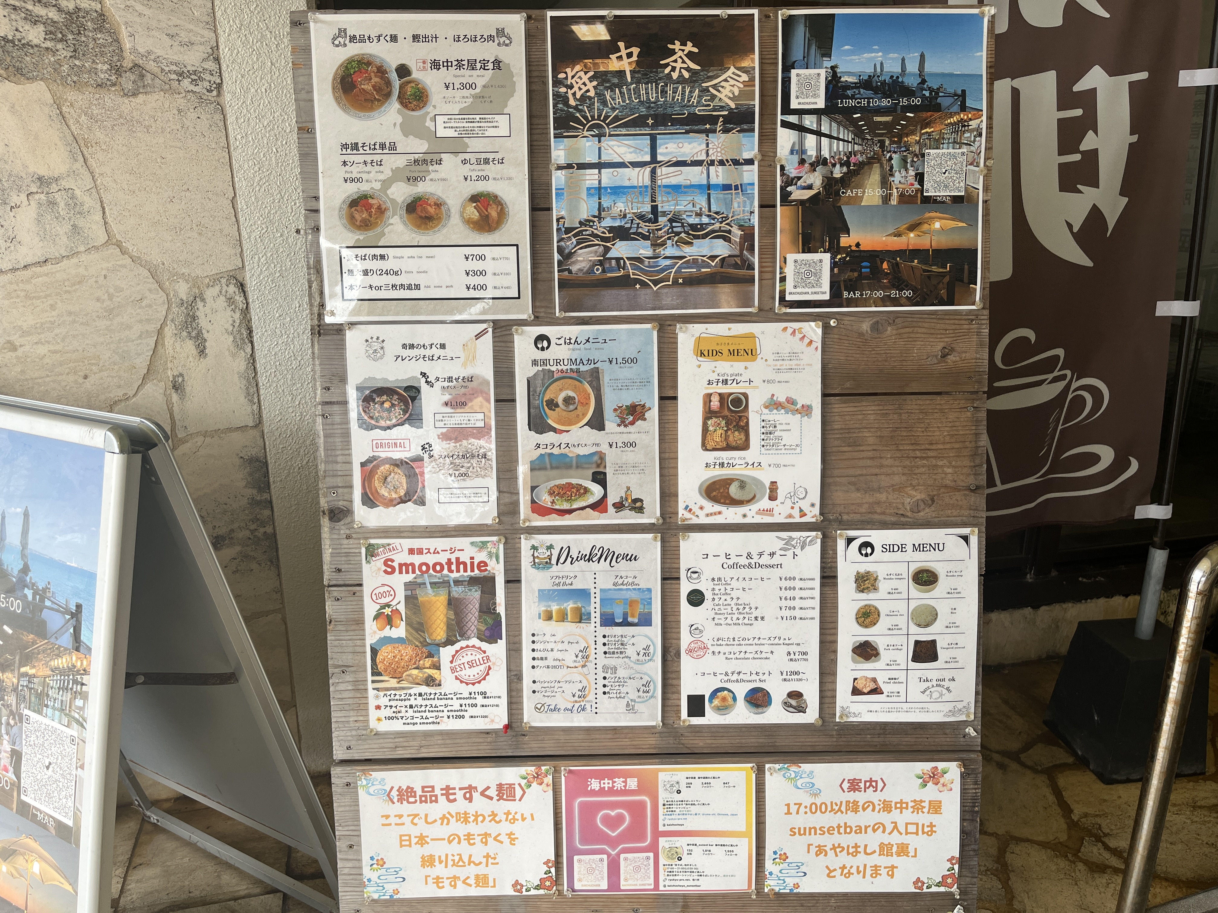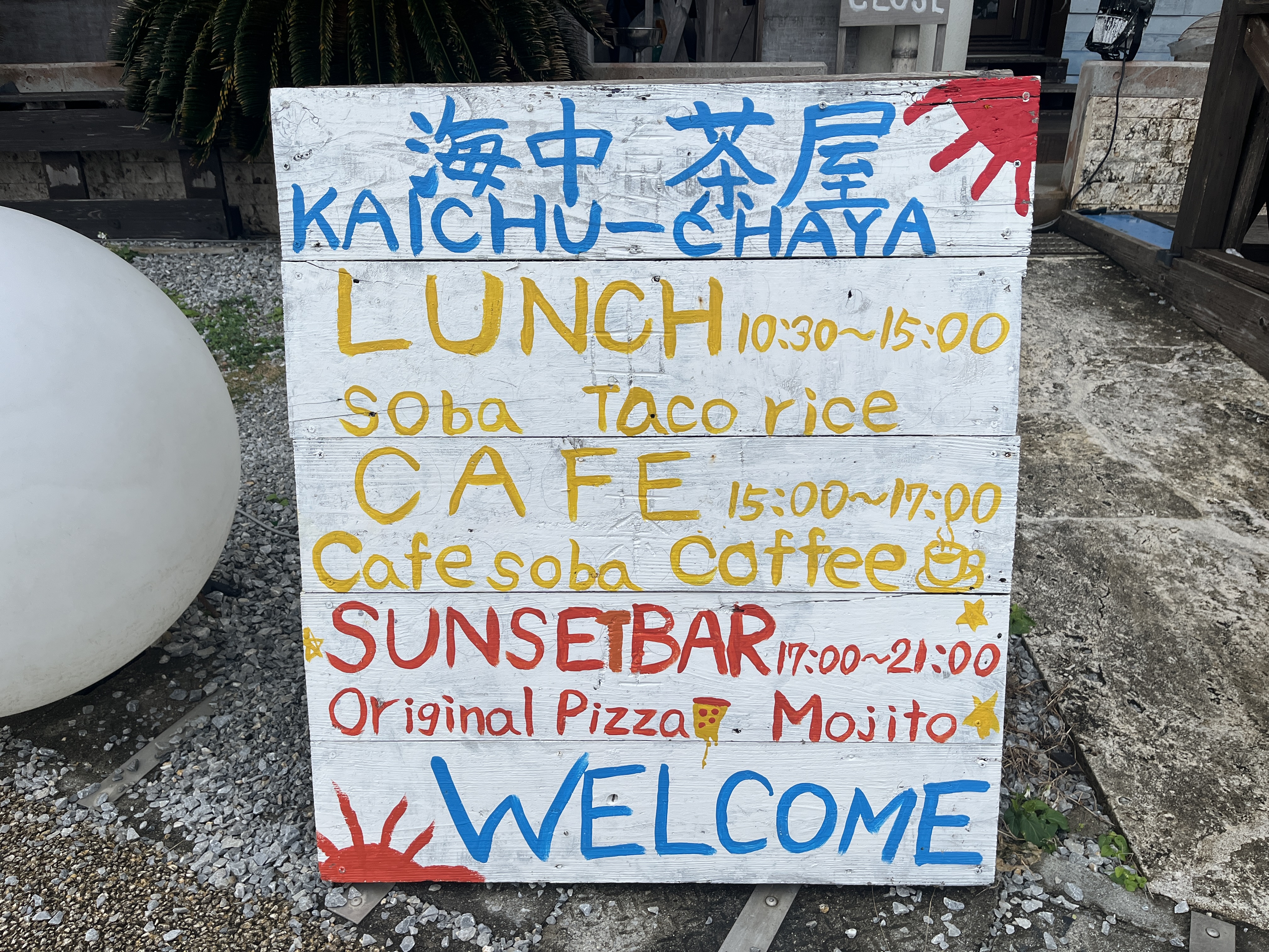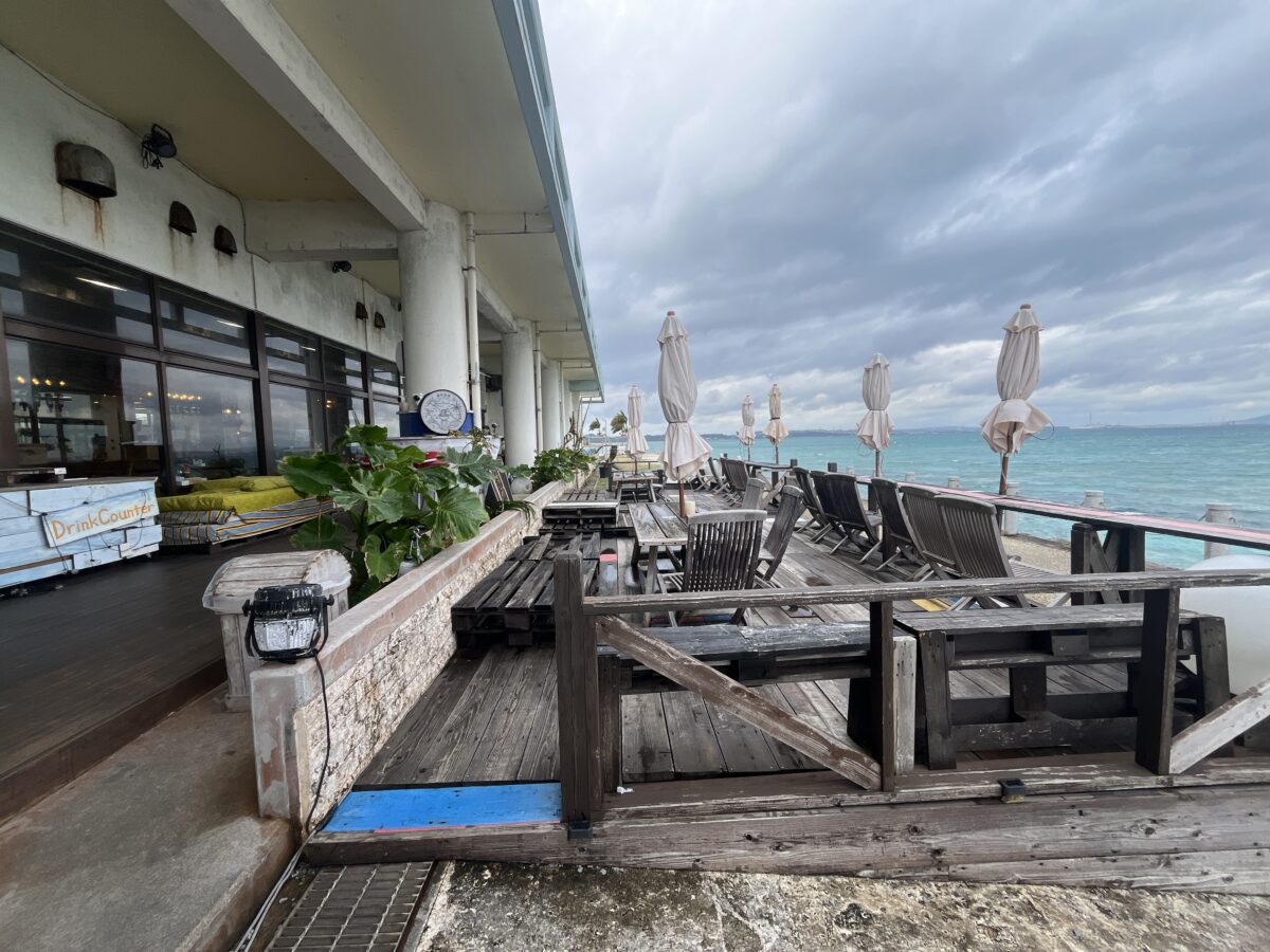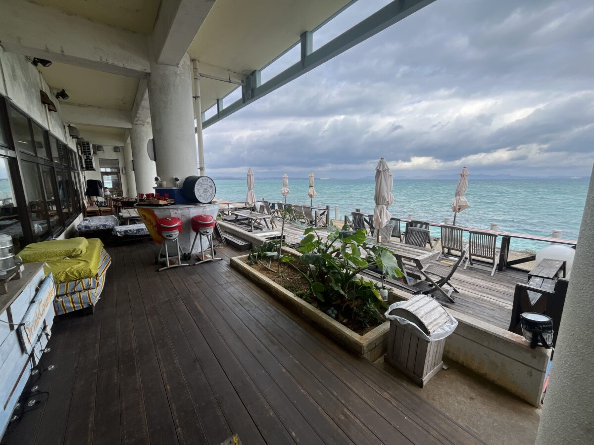 因みに、私は開店時間前に行った為、館内の入口の存在に気づかず、初手で海側(建物裏)に回ってました。建物の横には、海側を示す看板があるし、お店のInstagram見たらオーシャンビューだし、きっと裏側かと思ってて…