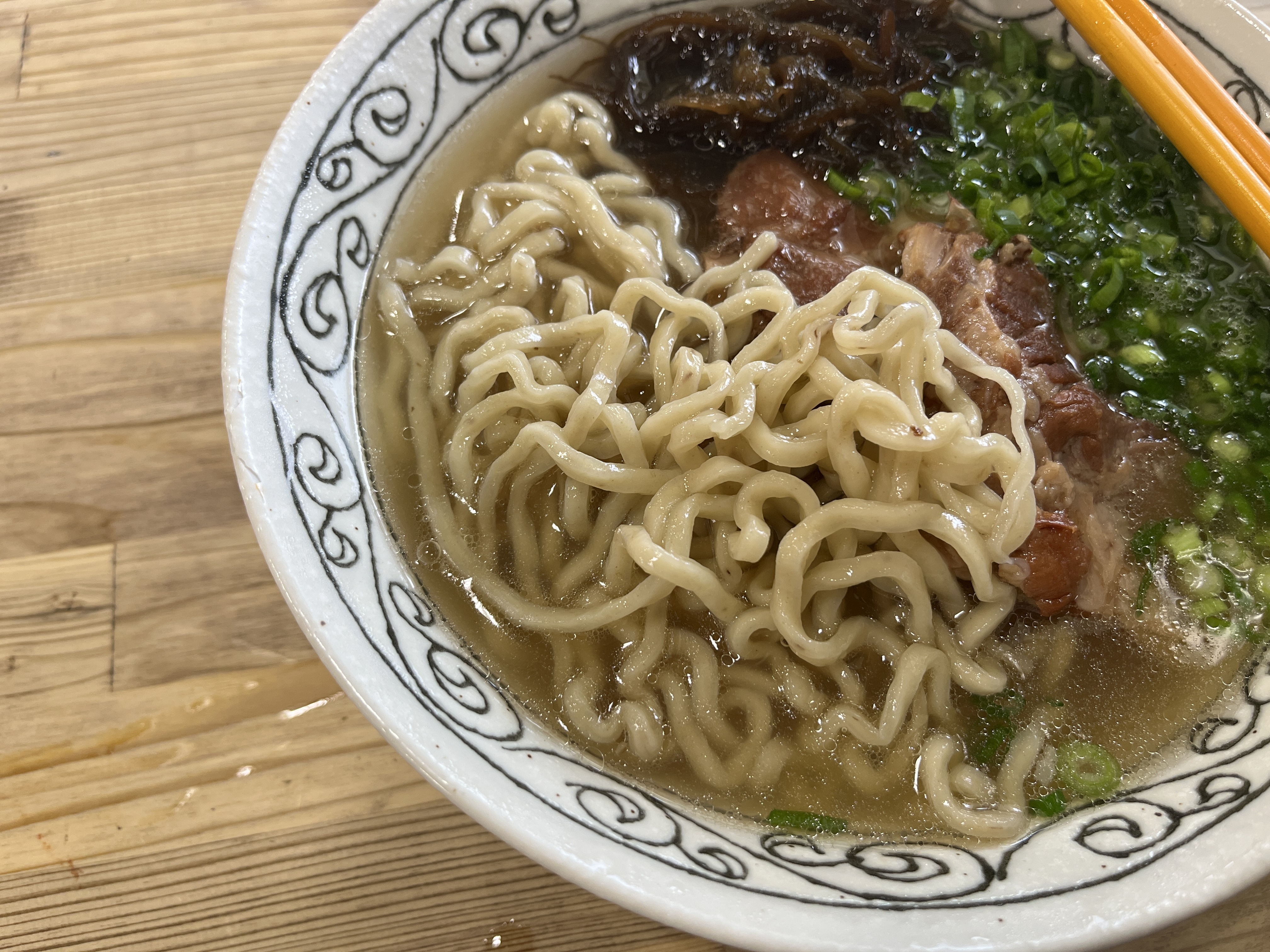 まず、本ソーキはメニューに書いてあった通りのホロホロです。骨離れが良くて柔らかい、箸で簡単に切れる。食べやすい。そして甘くて濃い味付け。ベストですね。コレはかなり好き。こうなるとやはり「定食(本ソーキ&三枚肉)」が注文出来なかった事が悔やまれる!三枚肉も美味しいんだろうなぁ。たぶん。