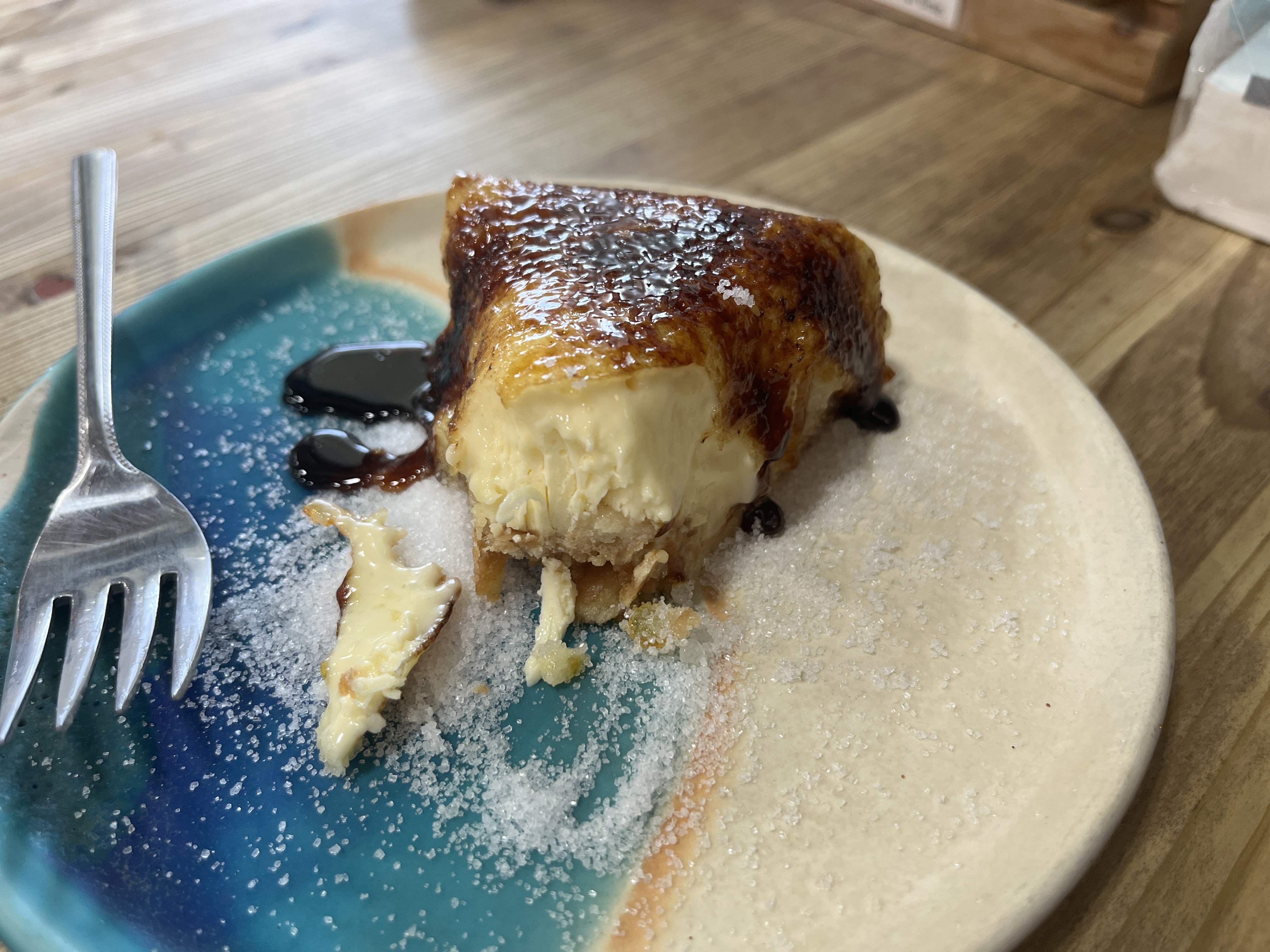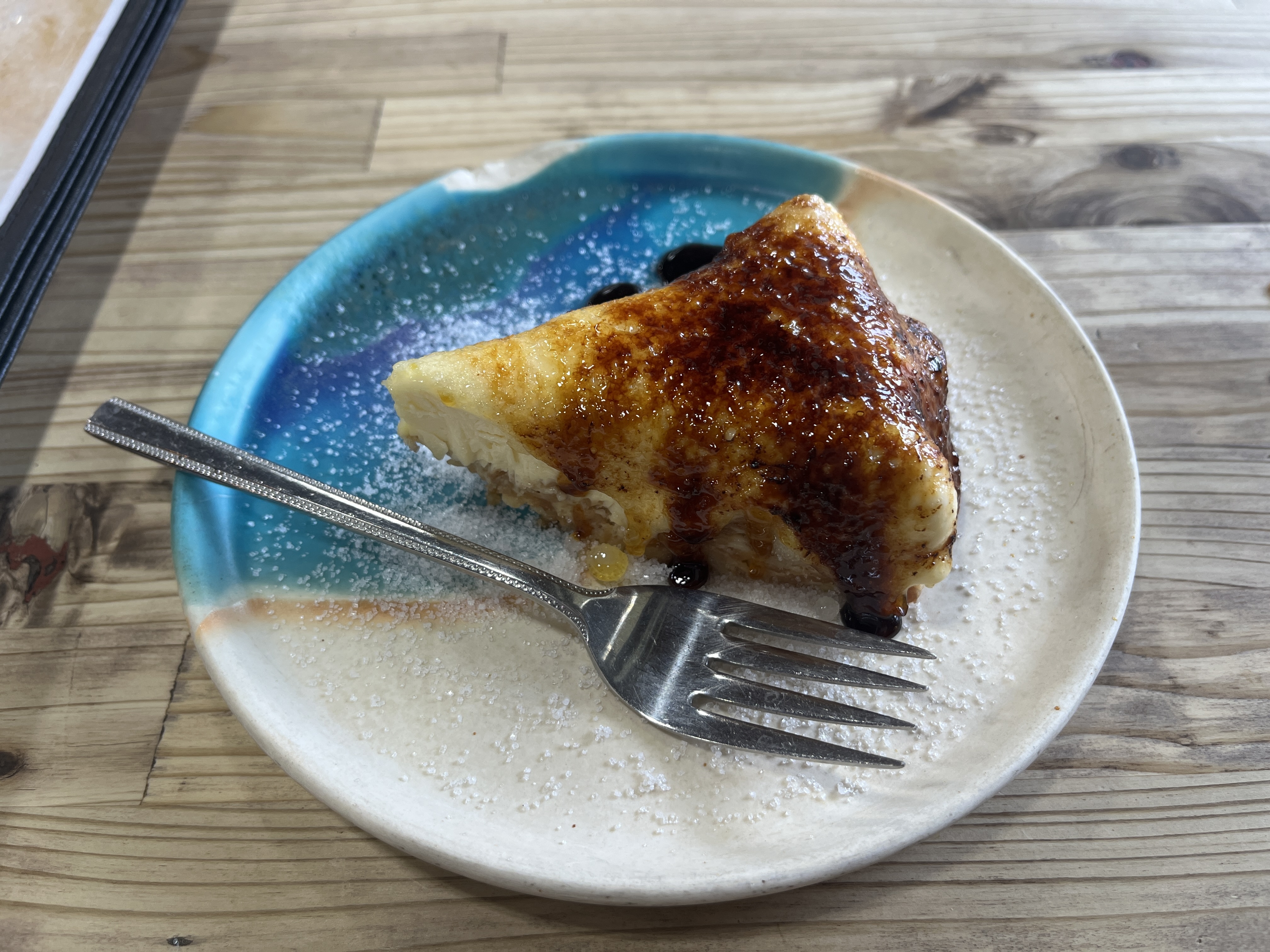 沖縄そばのクオリティに驚いた後だったが、更にデザートのクオリティにも驚きです!さすが、デザートですね。こちらは映えてます!見た目もキレイ!普通のレアチーズケーキと思ってたから、来た瞬間、二度見しちゃった!そっか、ブリュレって書いてあるもんね。