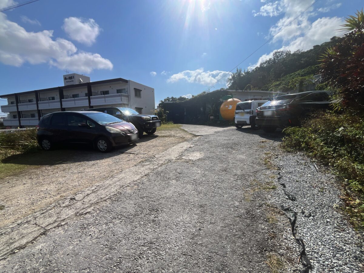 敷地内が駐車場になってますが、ラインがないので、停め方の正解がわからない。なんとなく周りに合わせて停めましょう。
