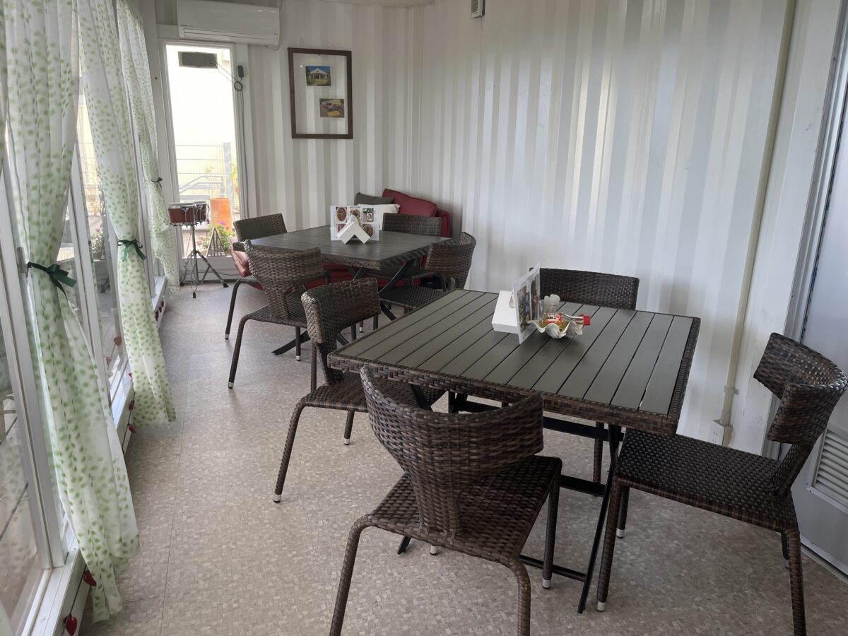 名前の通り、B&B併設のレストランです。左側が宿泊スペースで、右側がレストランです。そして1Fが駐車場になってます。因みに場所ですが、備瀬の畑の中にポツンとあって、普通の人(釣り人以外)では、知り得ない場所です。