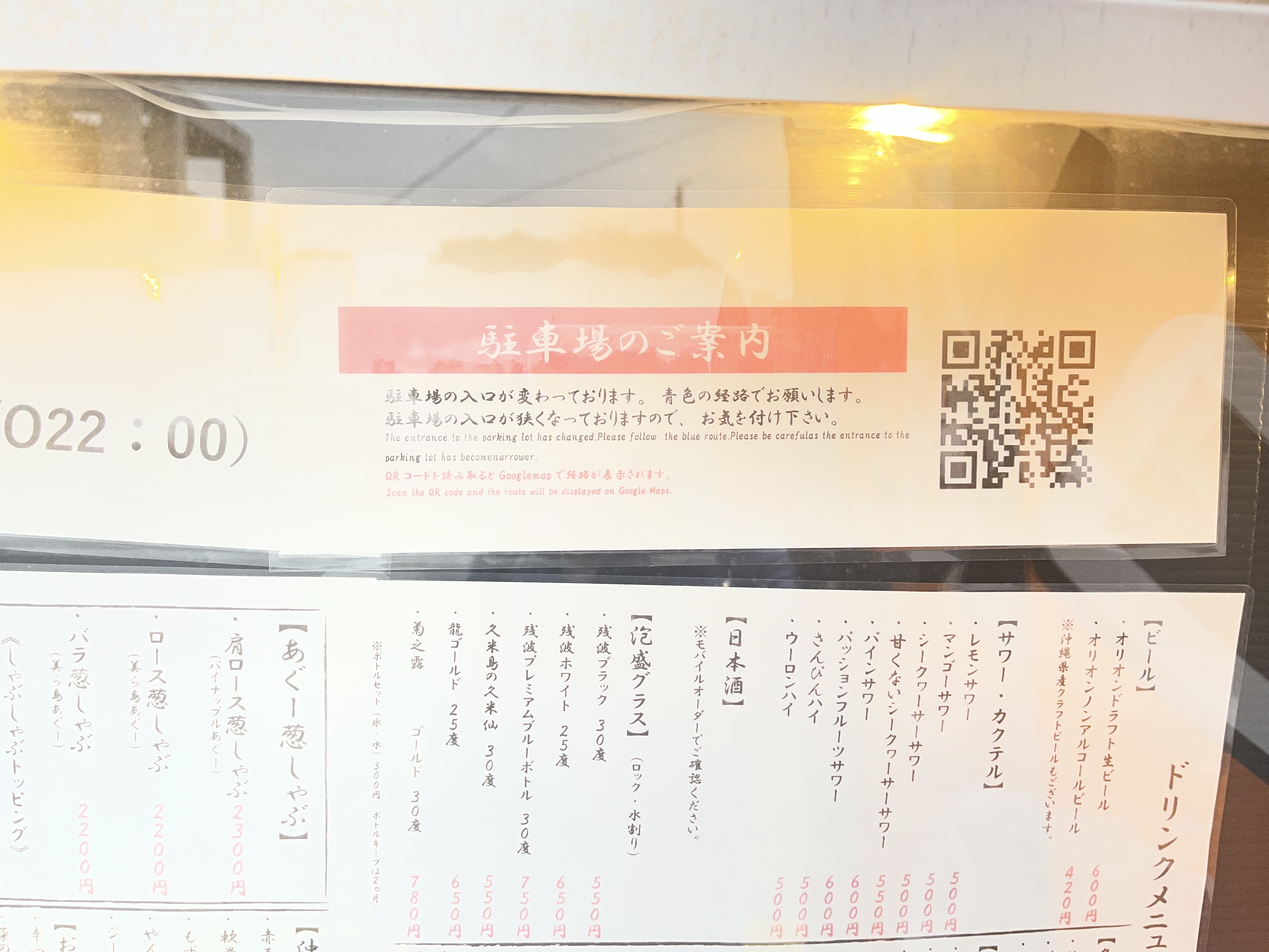 駐車場のご案内として、お店の入口にQRコードがあります。→コチラ