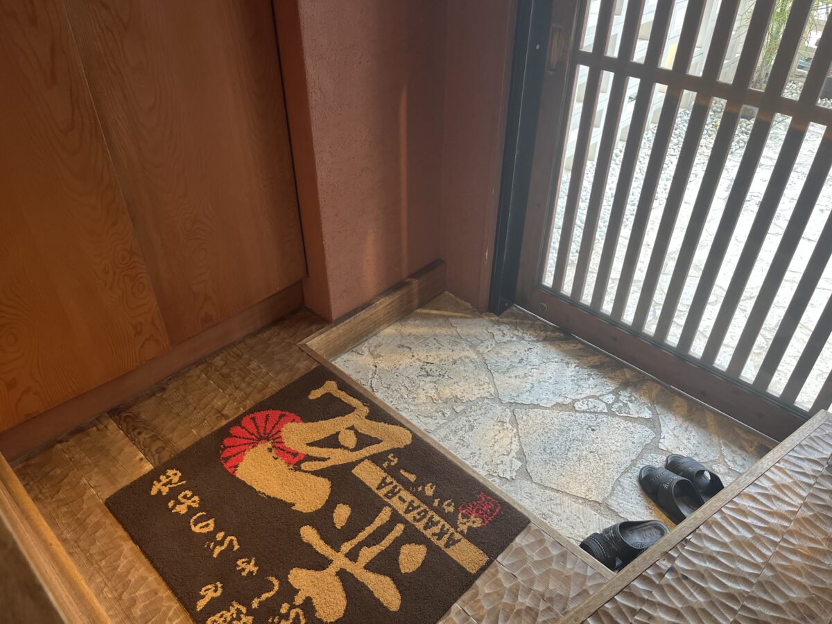 店内土禁です。コチラで履物を脱いで靴箱に収納!