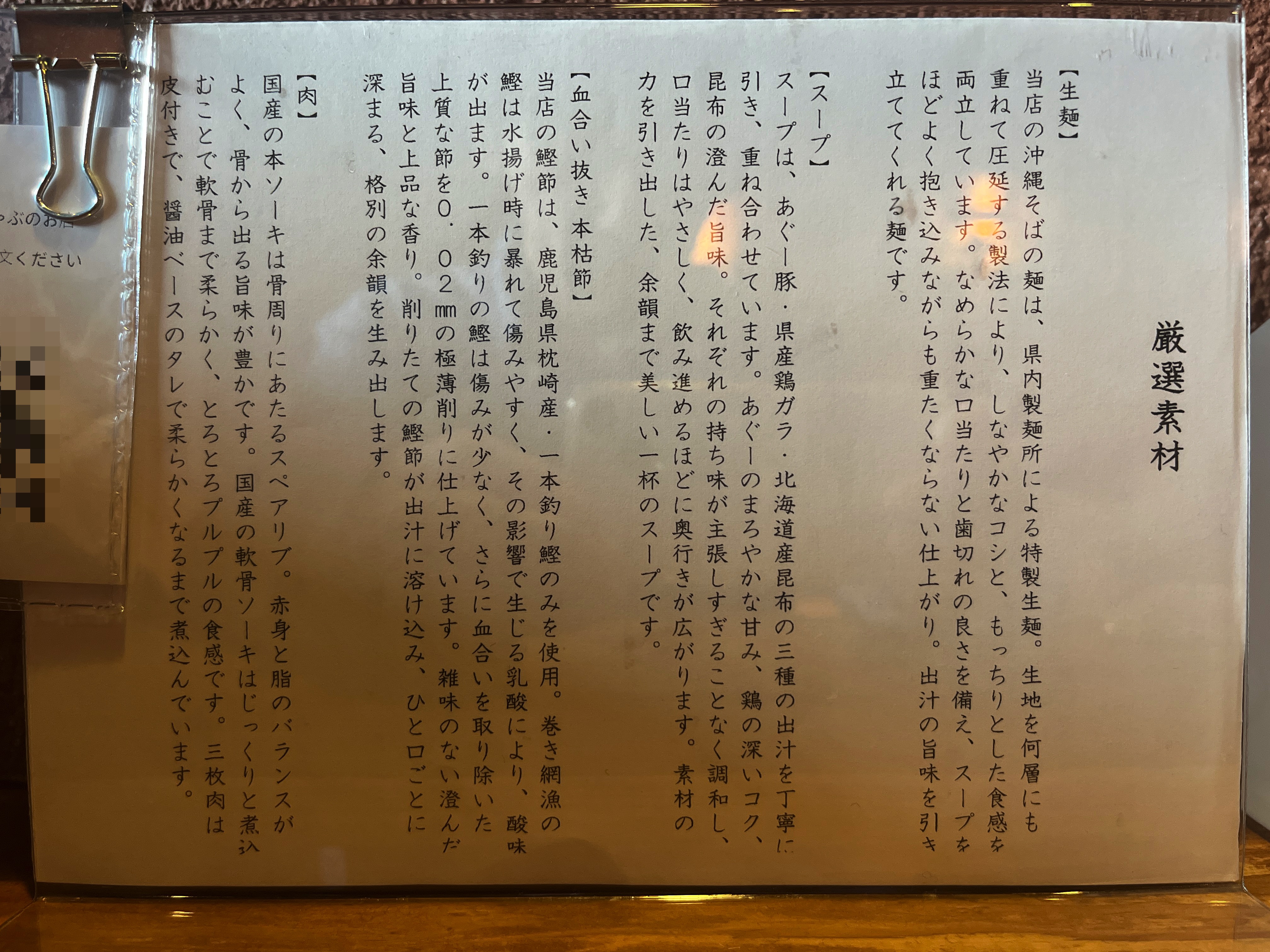 私的に、サイズ表記が並・大盛りってのが非常に好感が持てます!沖縄そば大 or 小って書く店、ホントに困る!私が頼みたいのは並です!大と小って、どっちが並サイズなんだい!?って、いつも心の中で憤慨しております。
