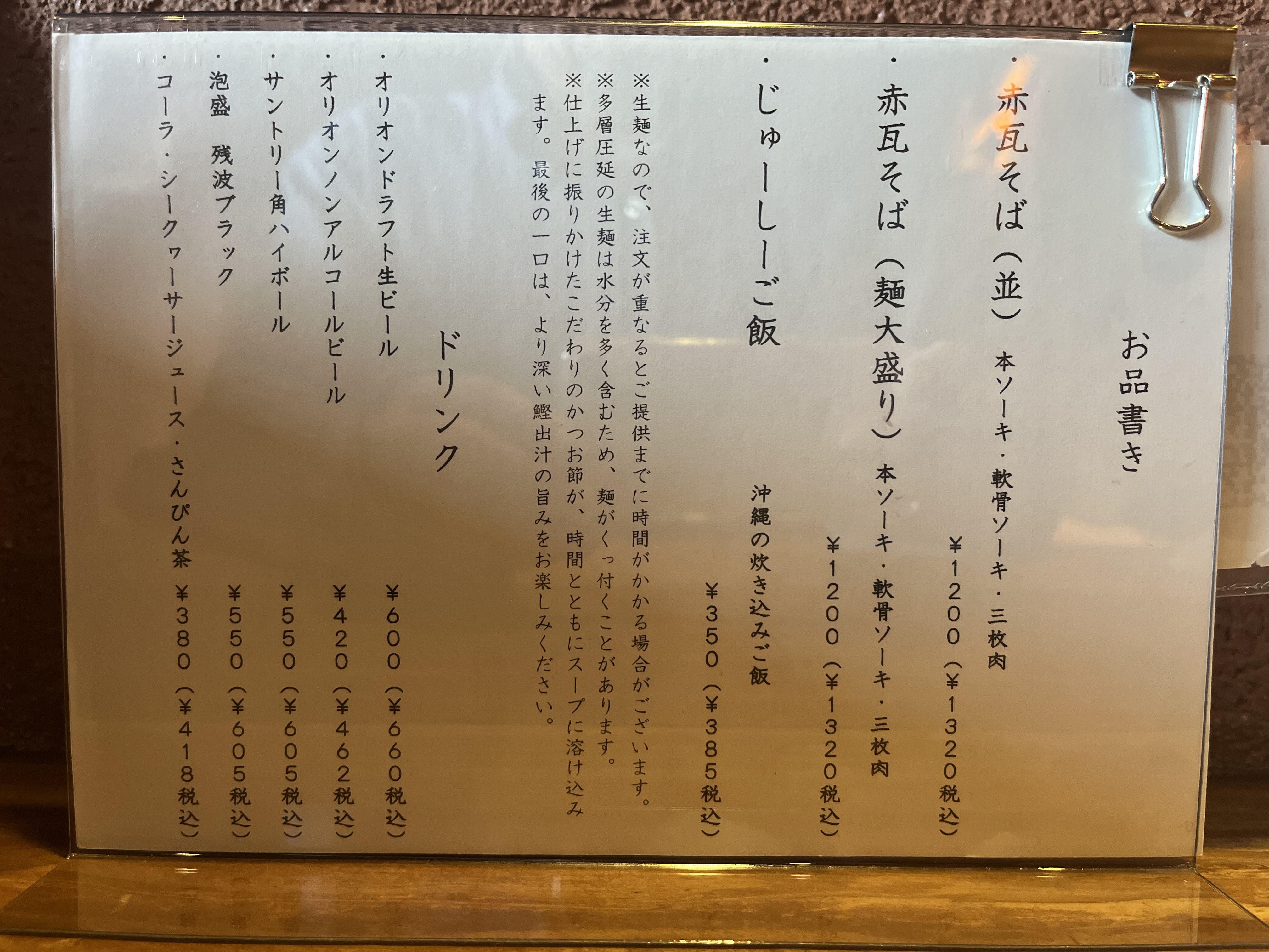ランチメニューはシンプルです!赤瓦そばの並 or 大盛り。そして、じゅーしーです。