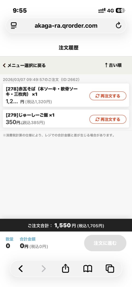 注文はQRコードです。ブラウザなのが好感が持てる!LINEで友達追加するヤツ、マジで嫌い。