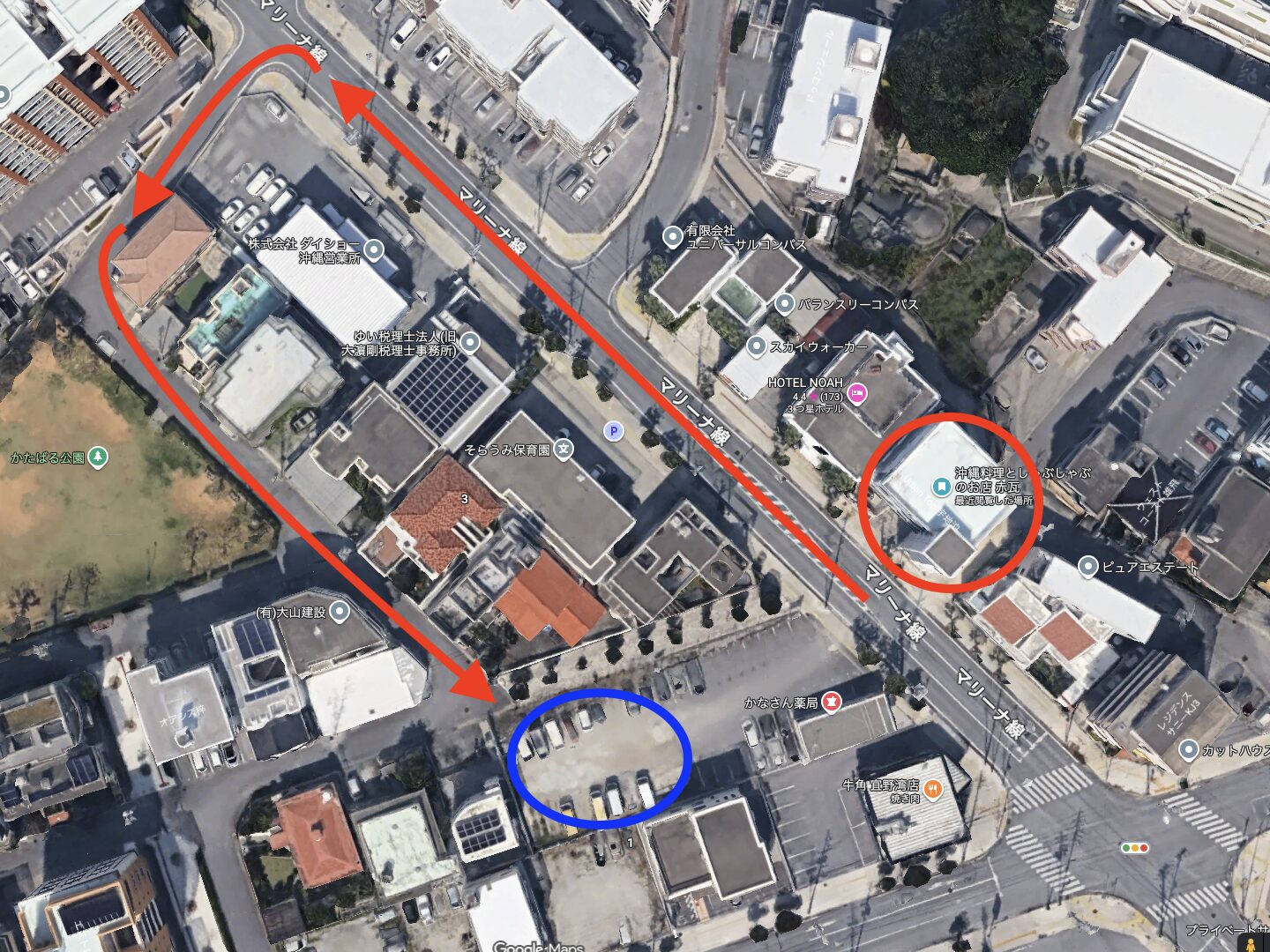 お店の場所は、サンエー宜野湾コンベンションシティー、ラウンドワン宜野湾店の裏手になります。