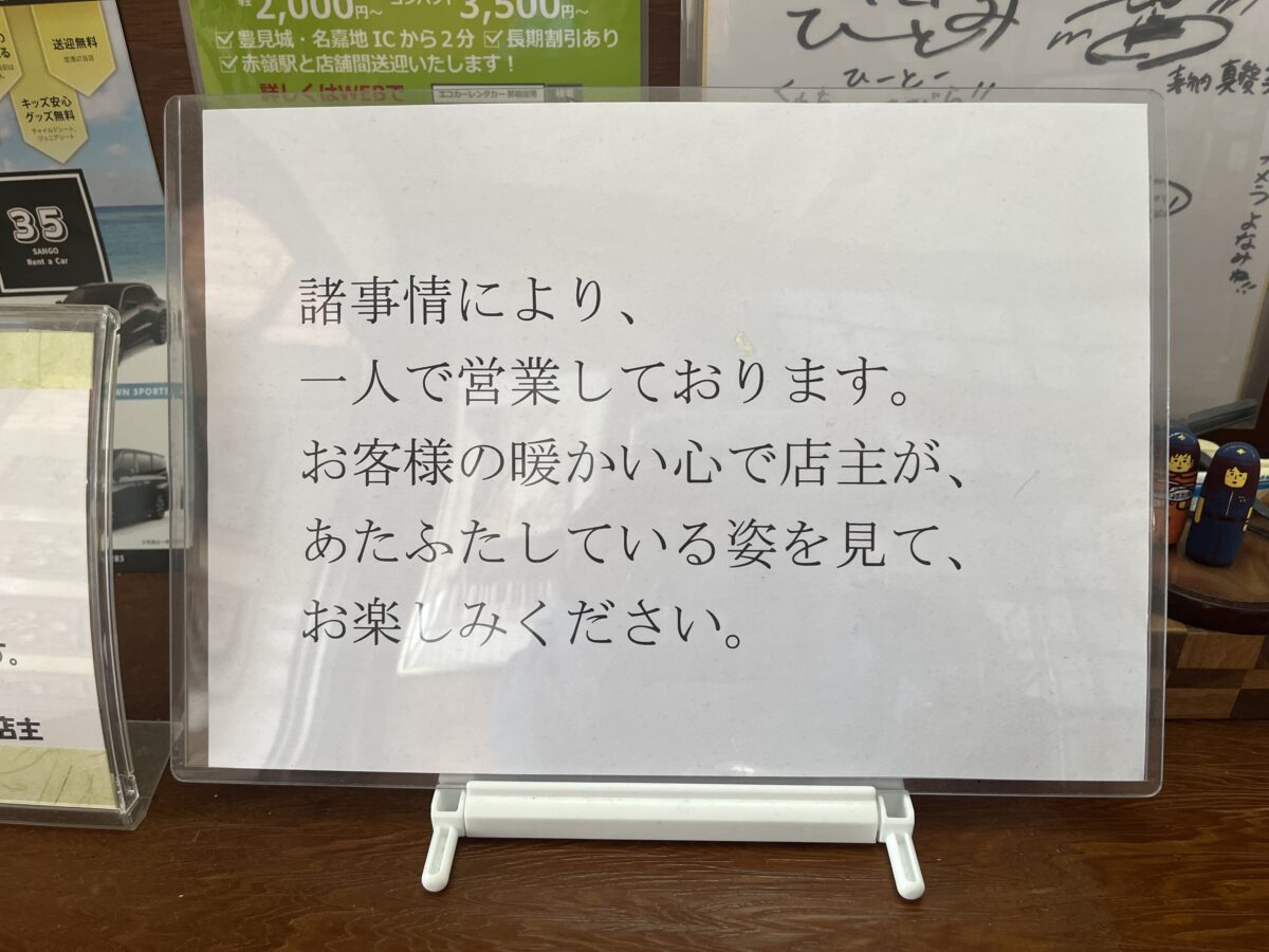 ほとんどの店が、基本的に撮影OKですけど、毎回、店員さんに確認したりします。でも、コレがあれば、聞く必要なし。磯ノ宮 店主さんの、こういう細かい配慮が好きなんです。因みにワンオペなので、時間と心にゆとりを持って訪問ください