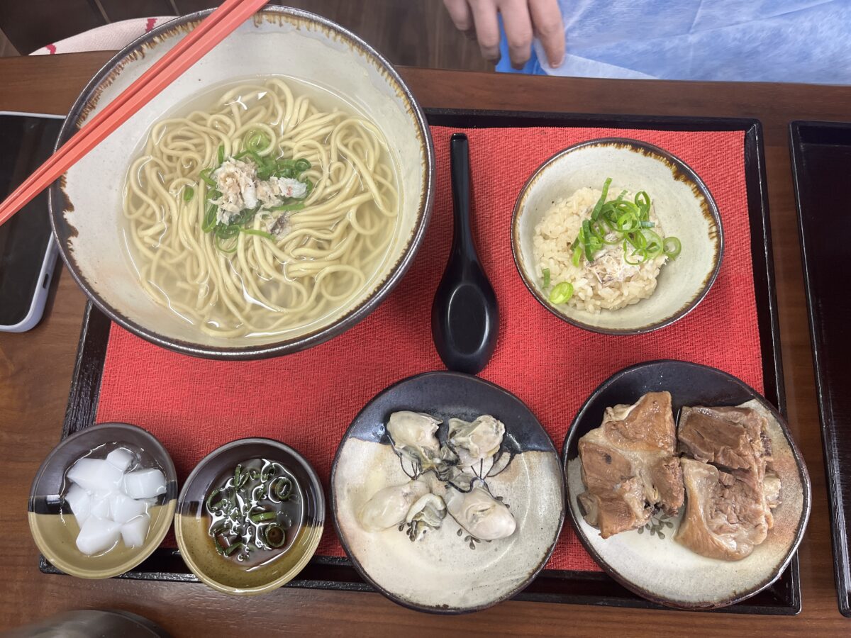 磯ノ宮スペシャルは、鯛めし、鯛出汁そば、牡蠣、ソーキ、杏仁豆腐がつきます。