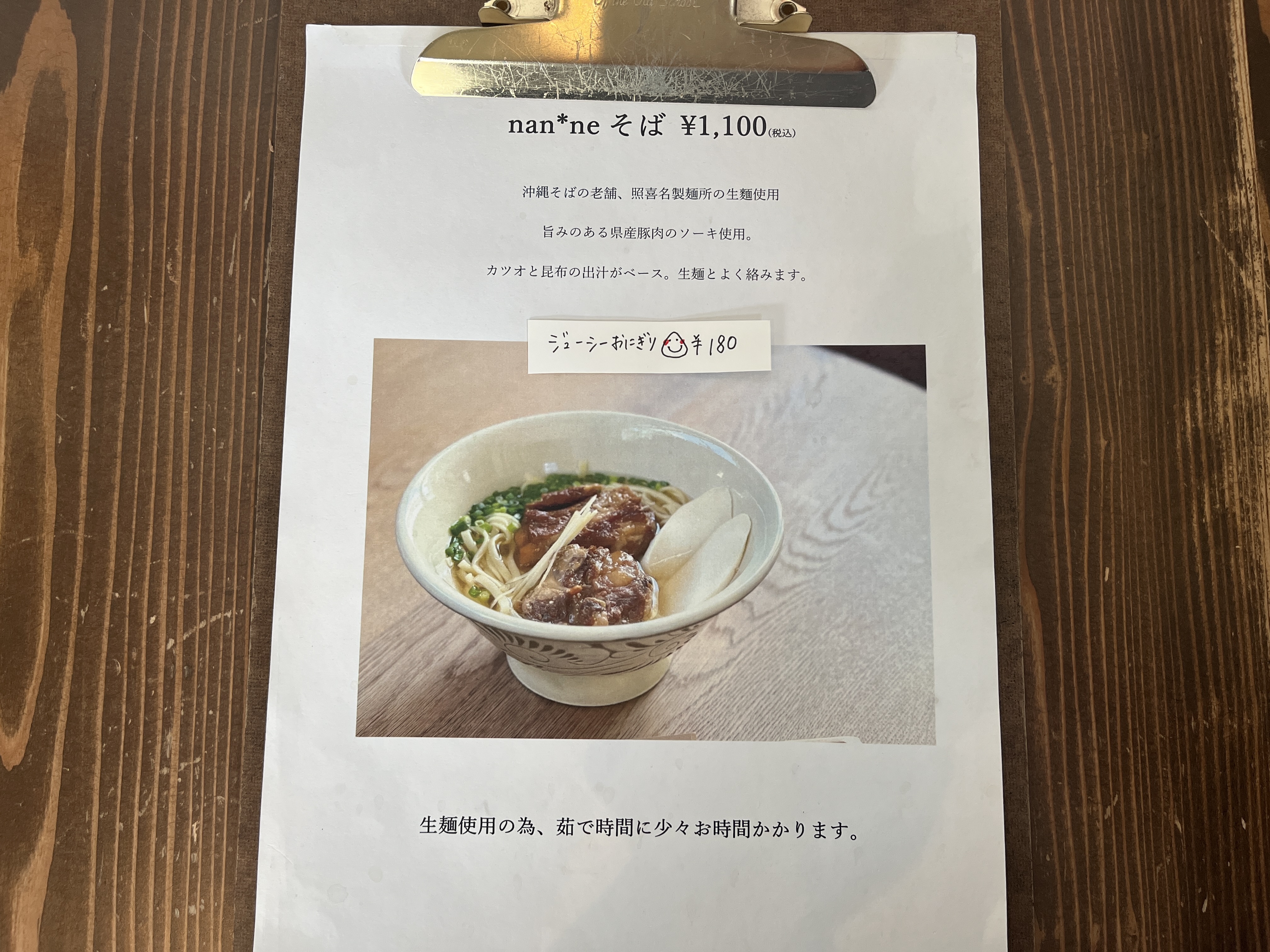 まさかのワンメニュー!こちらの沖縄そばメニューは、一品しかありません!