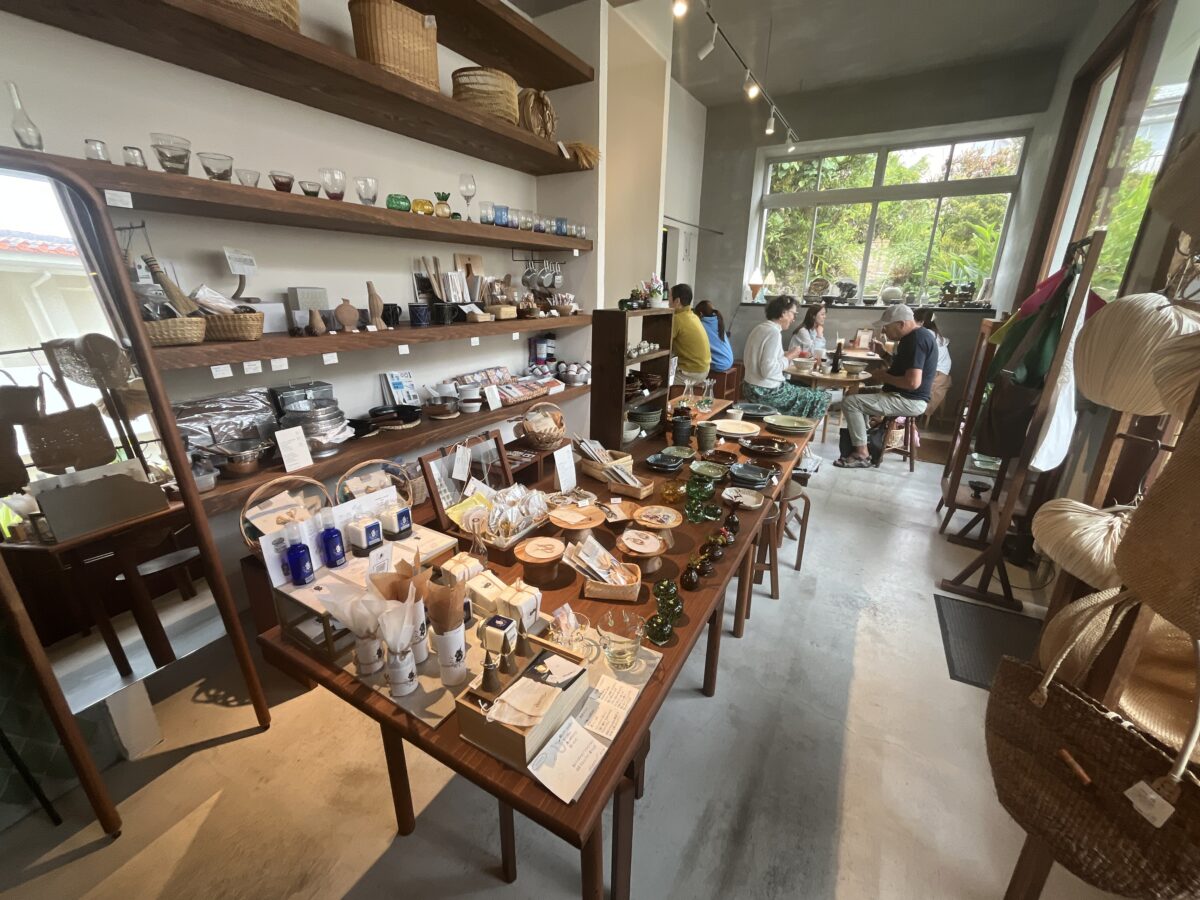 nan*neは、那覇市壺屋やちむん通りにある雑貨屋さん。その一角にカフェスペースがあり、沖縄そばを提供しています。飲食店らしからぬ店内の雰囲気が、すごくオサレなんですよね。