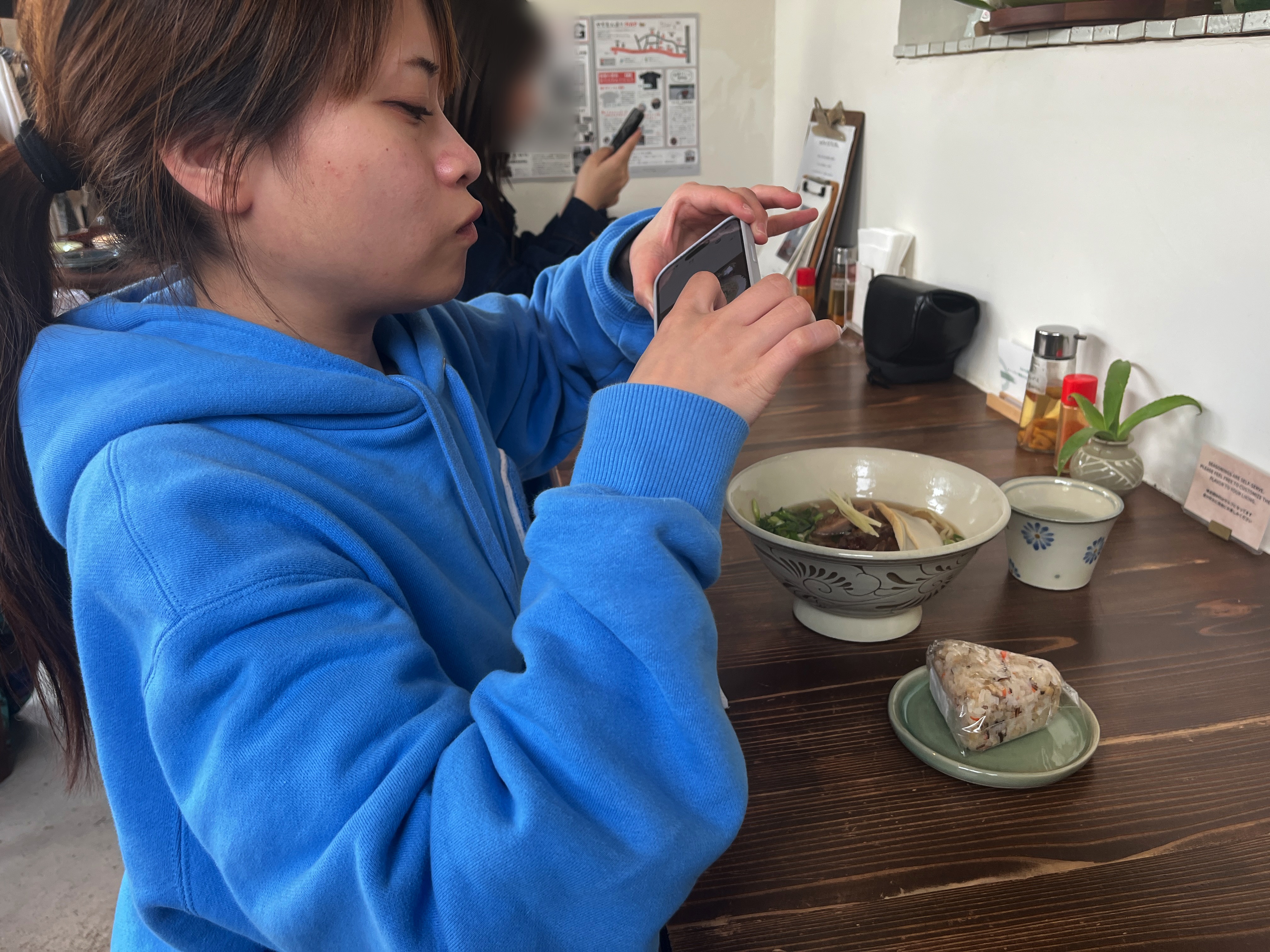 さすがのくまさんも、「同じ品を2つ!」という暴挙には出ず。大人しく、沖縄そばとジューシーおにぎりを1品づつ注文してました。