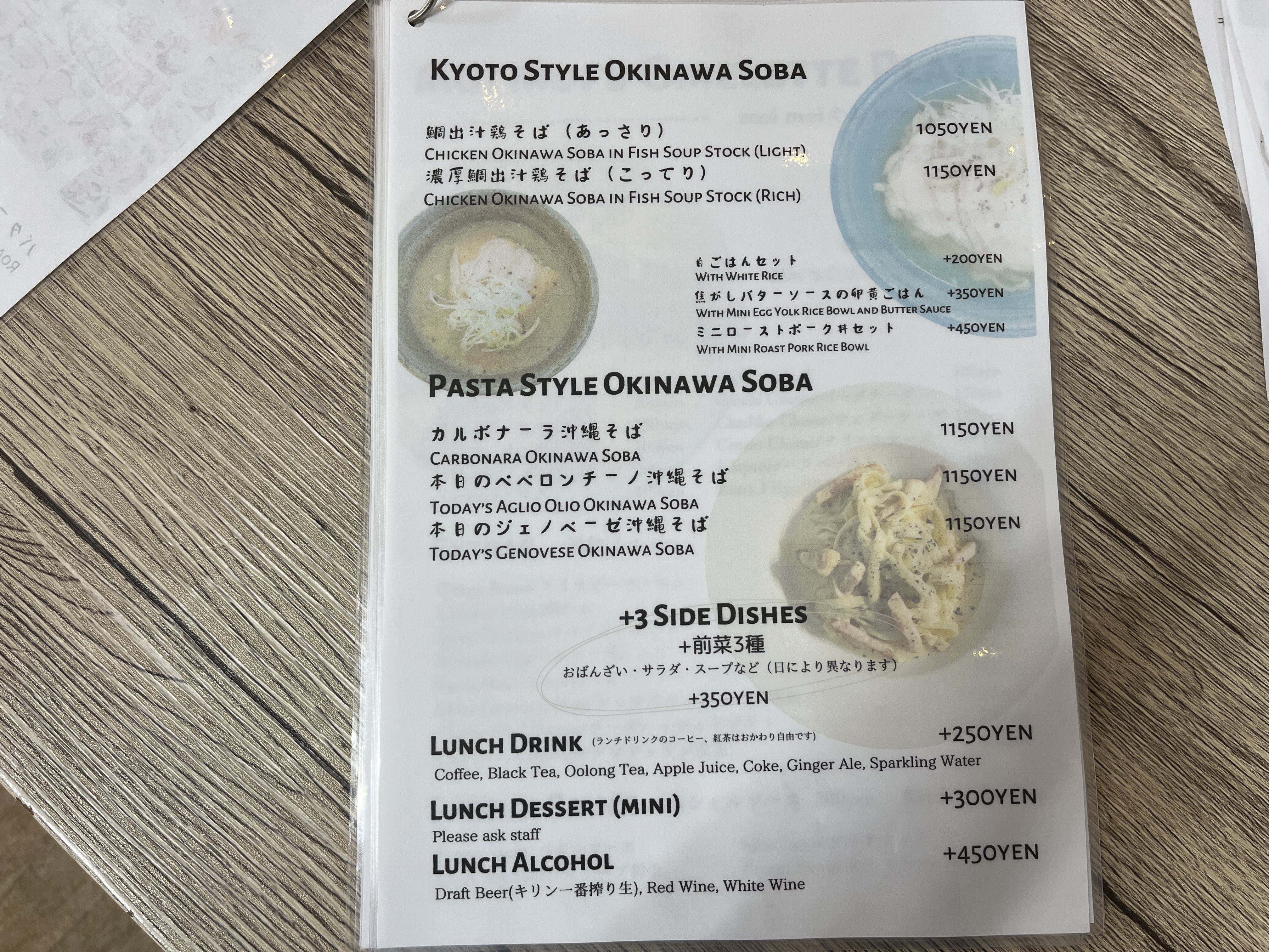 メニュー数は少ない。鯛出汁沖縄そばオンリーです。