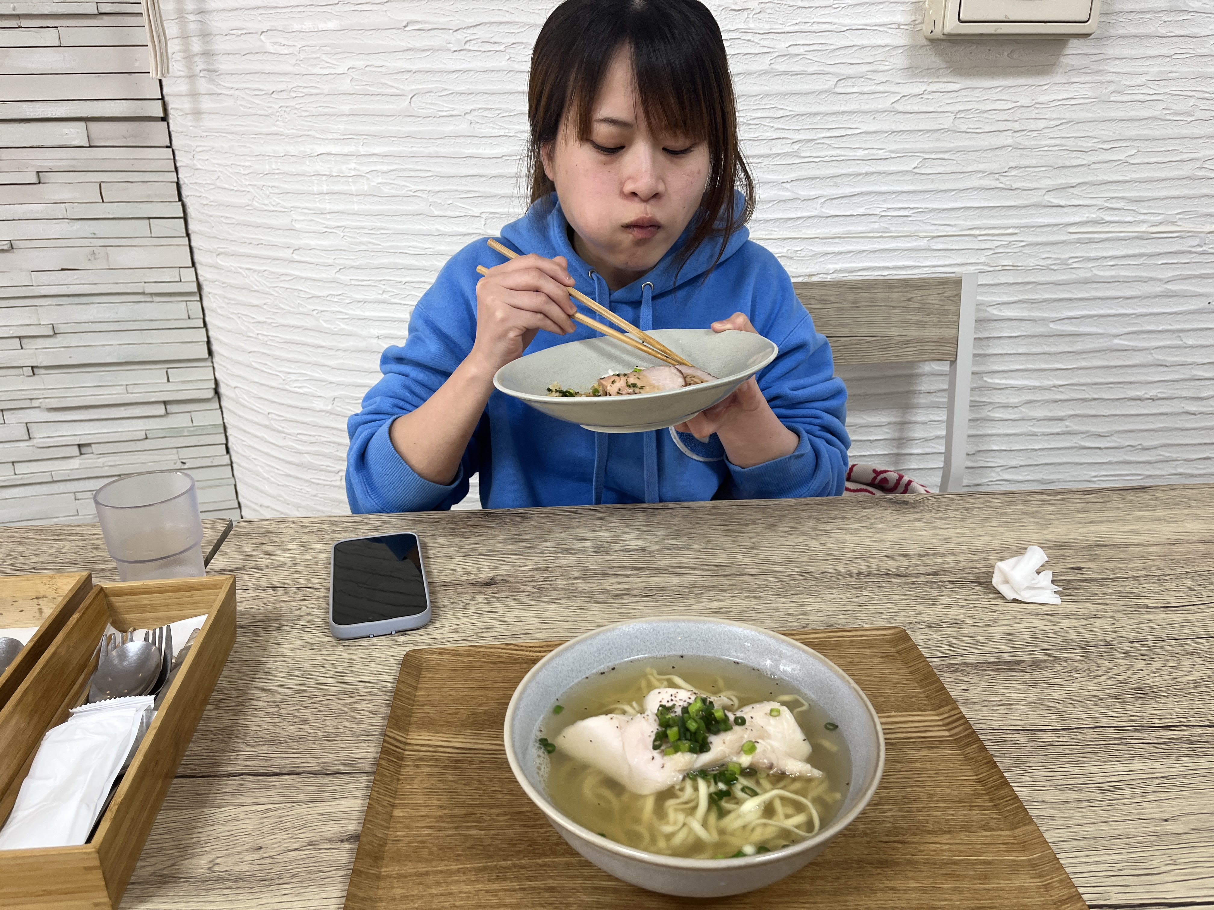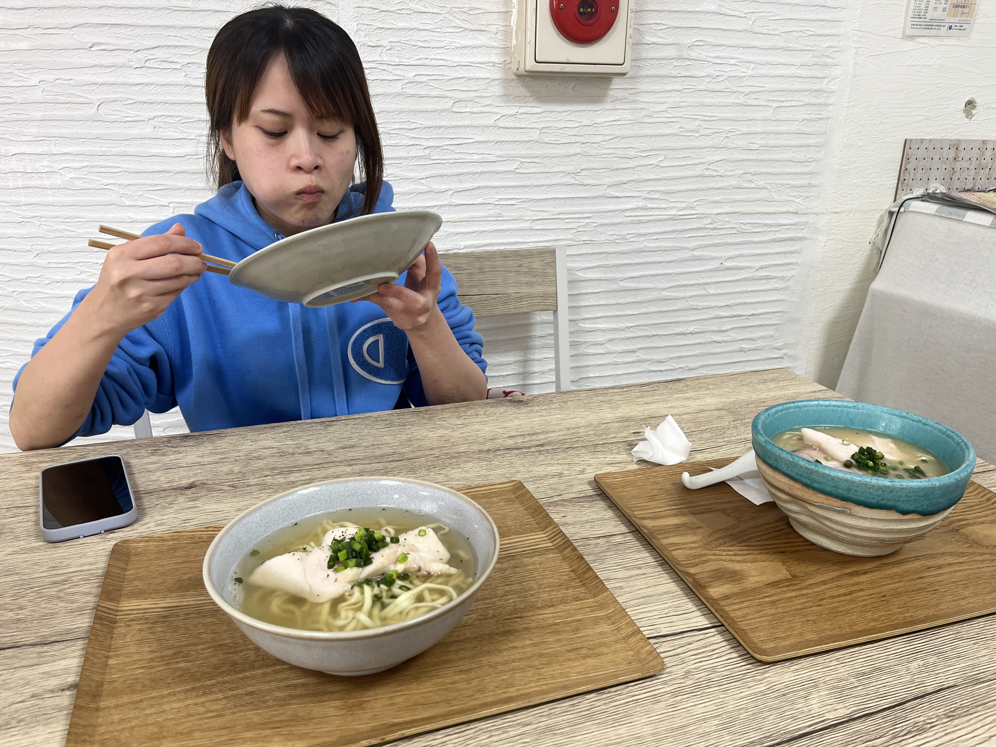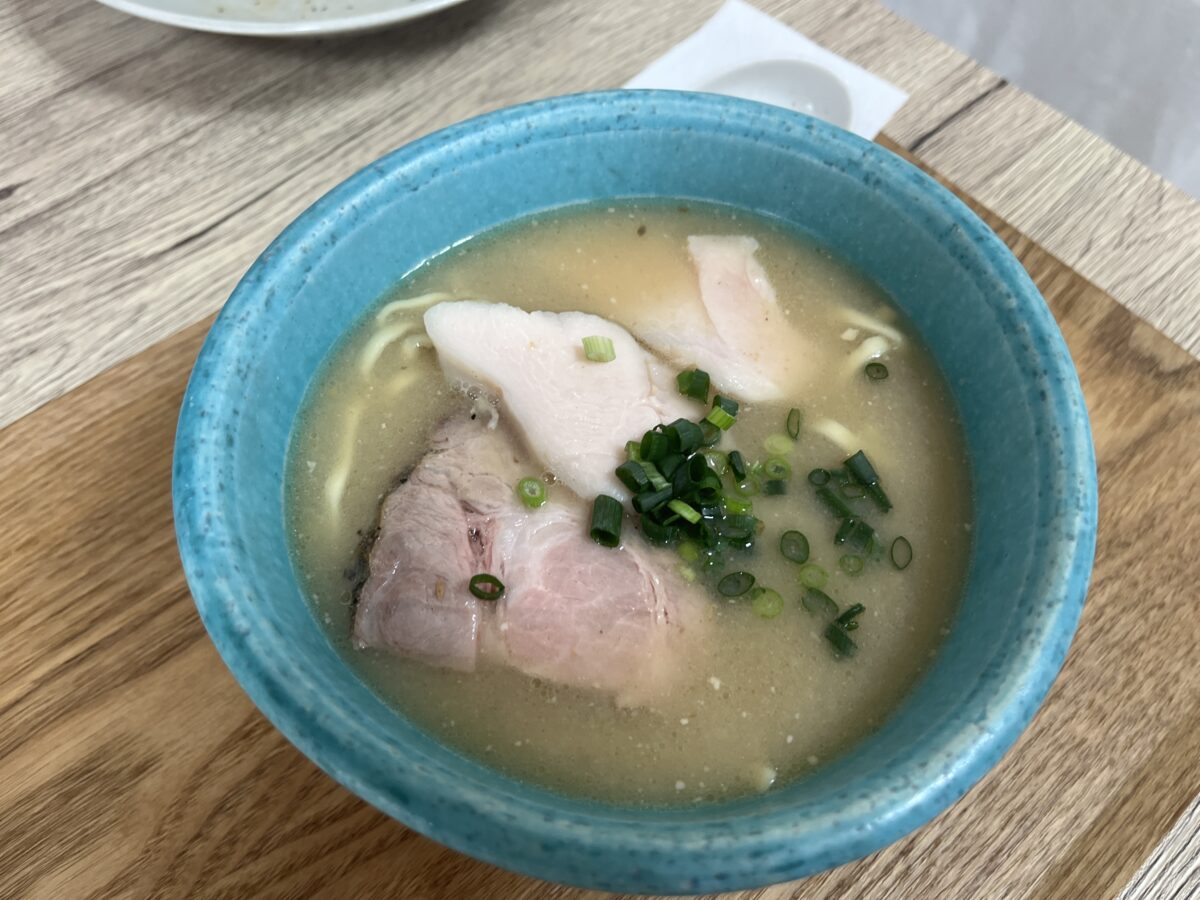 ローストポーク丼を食べてる途中ですが、更に追加注文の鯛出汁鶏そば(あっさり)が到着!くまさんの完食を待ってます!