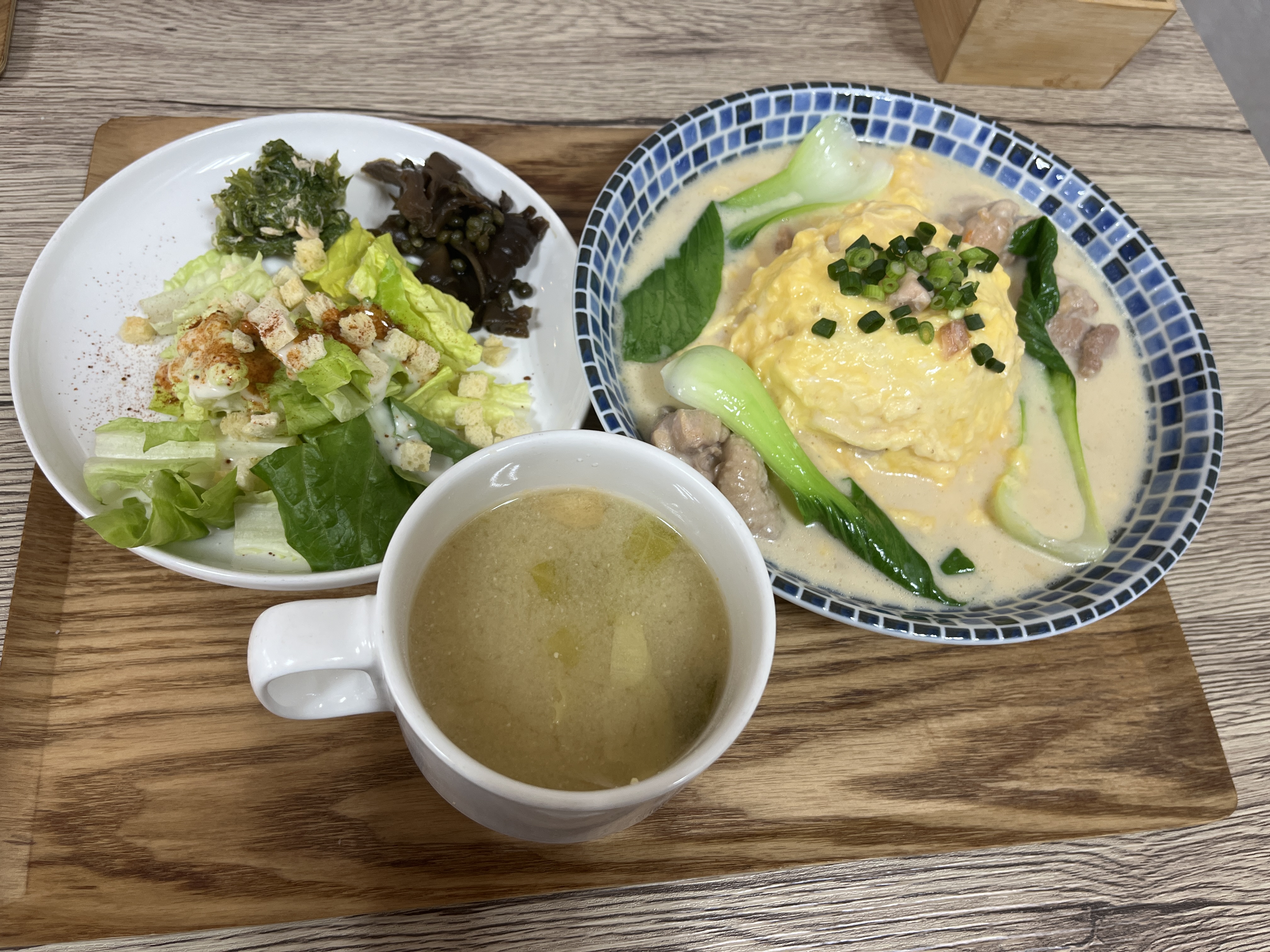 京風クリームオムライス、おばんざい、サラダ、スープ