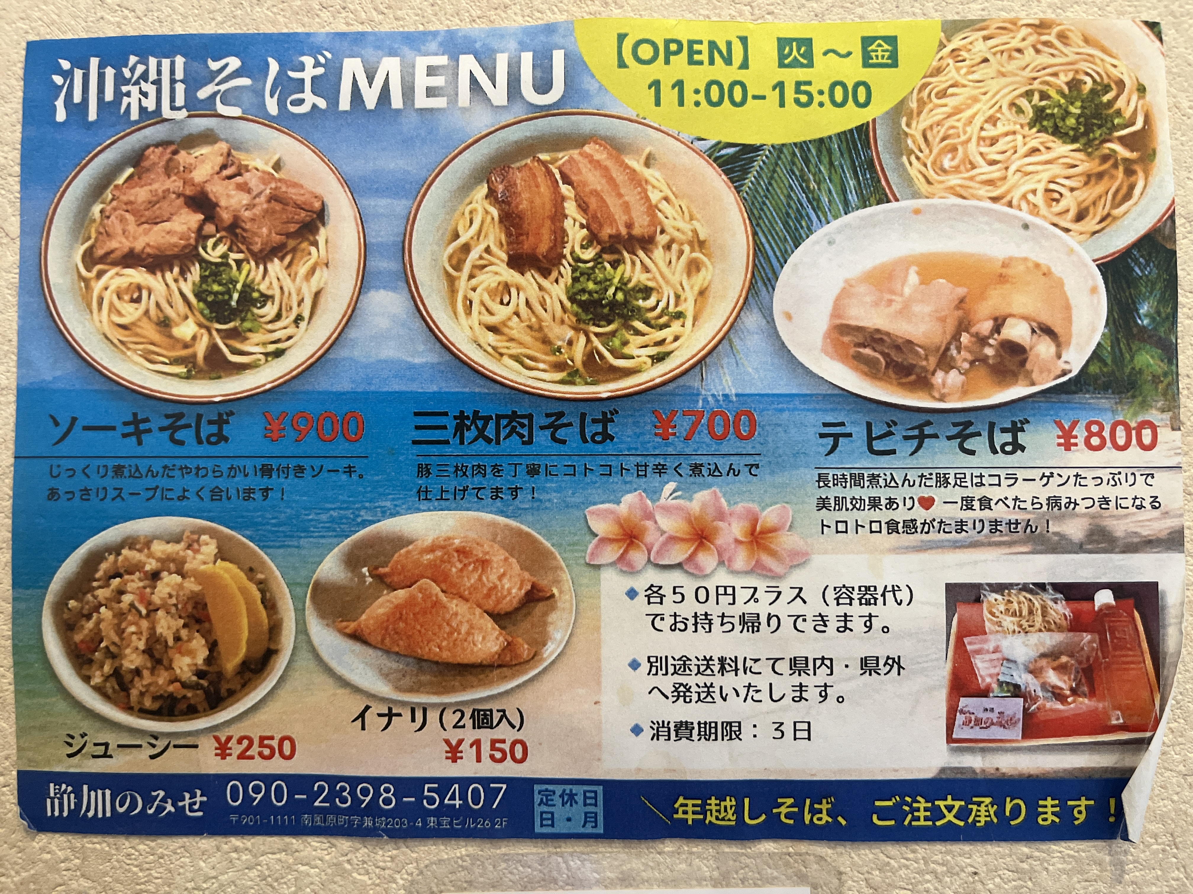 昨日の「一膳飯屋 鹿谷」に引き続き、今日も飲み屋の沖縄そばです。南風原町「静加のみせ」いわゆるスナックです。ランチタイムに沖縄そばを提供しています。コロナ禍の頃、結構流行りましたよね。